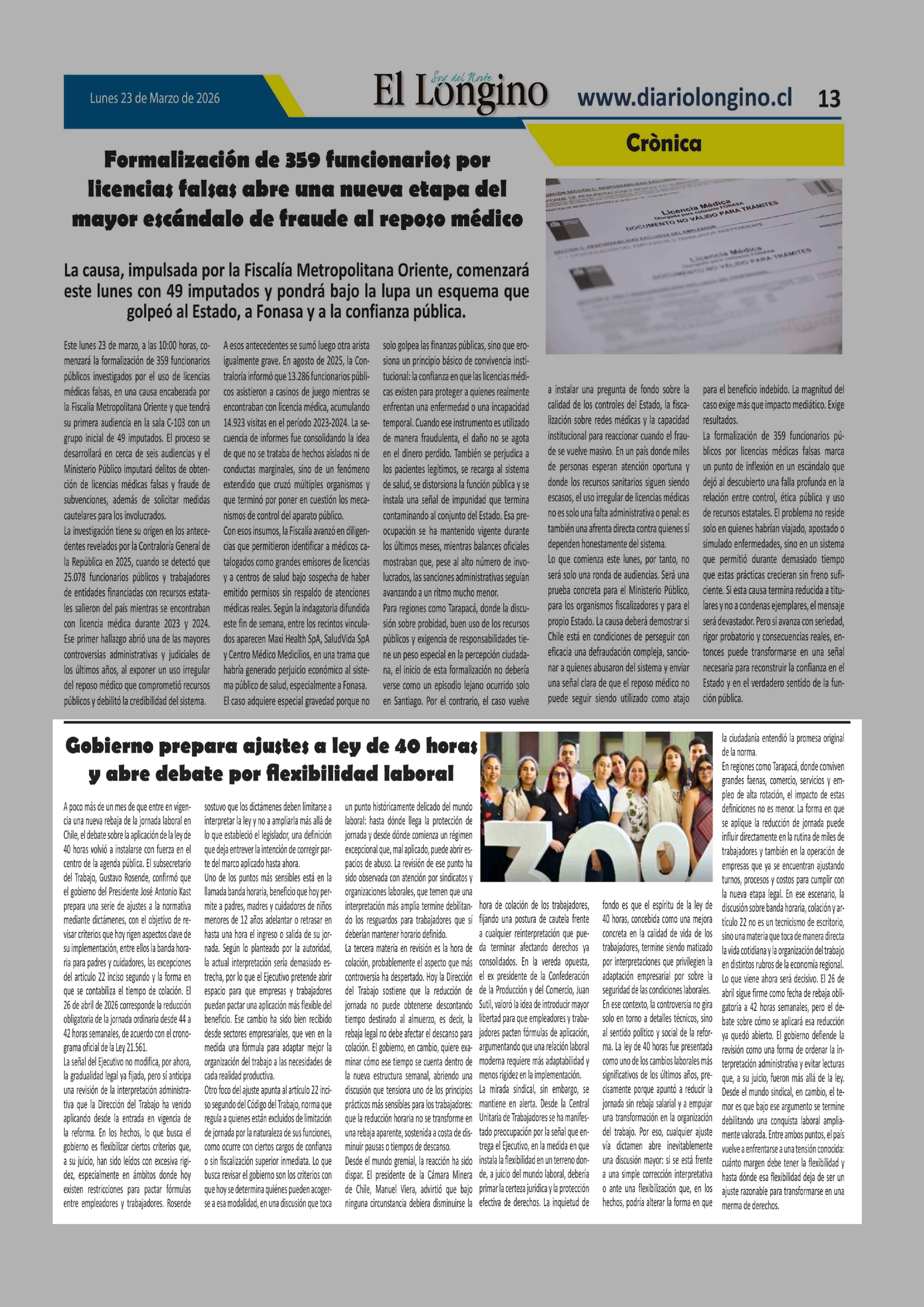 Título: Gobierno prepara ajustes a ley de 40 horas y abre debate por flexibilidad laboral