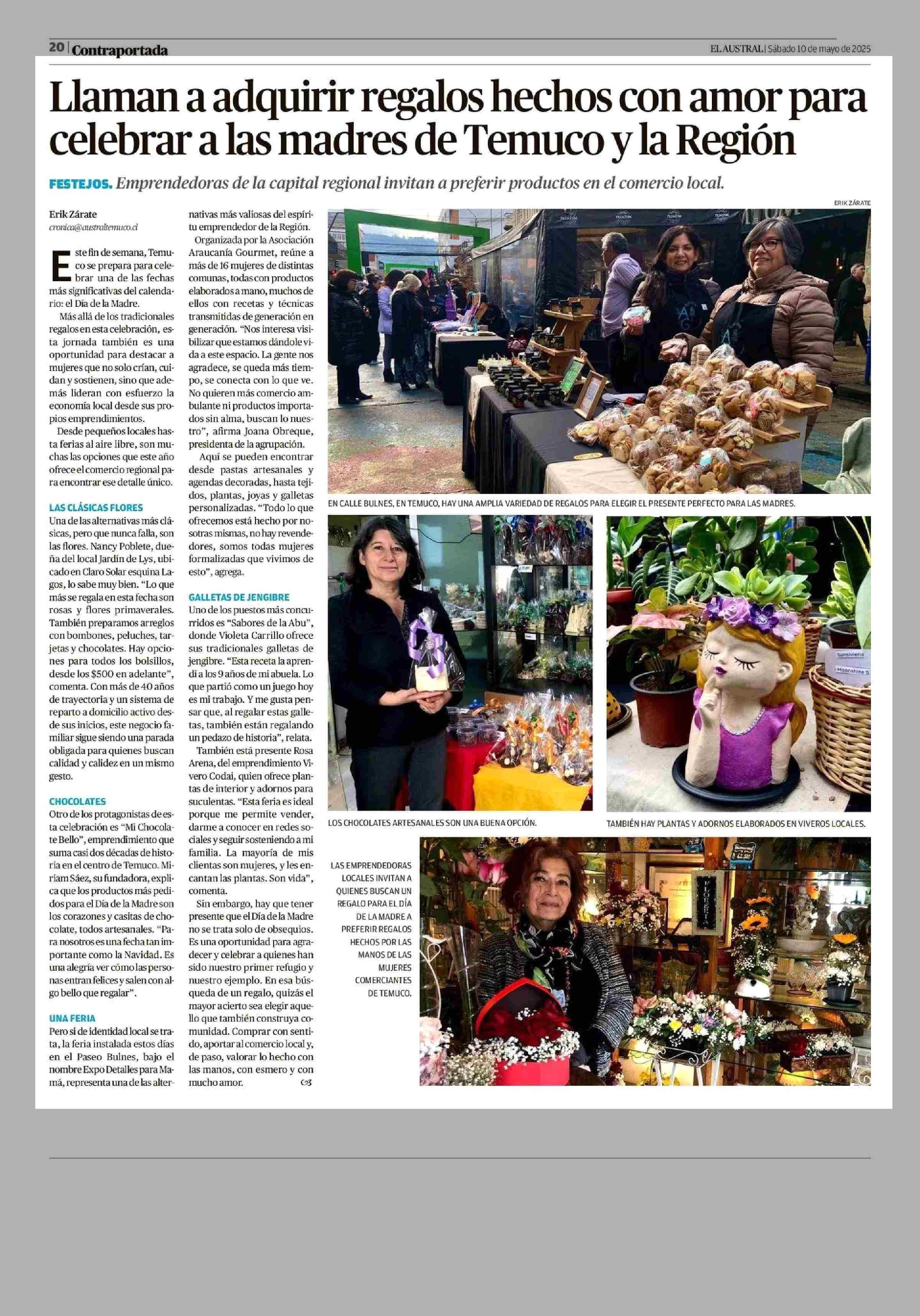 Llaman a adquirir regalos hechos con amor para celebrar a las madres de Temuco y la Región 10-05-2025 El Austral de la Araucanía |