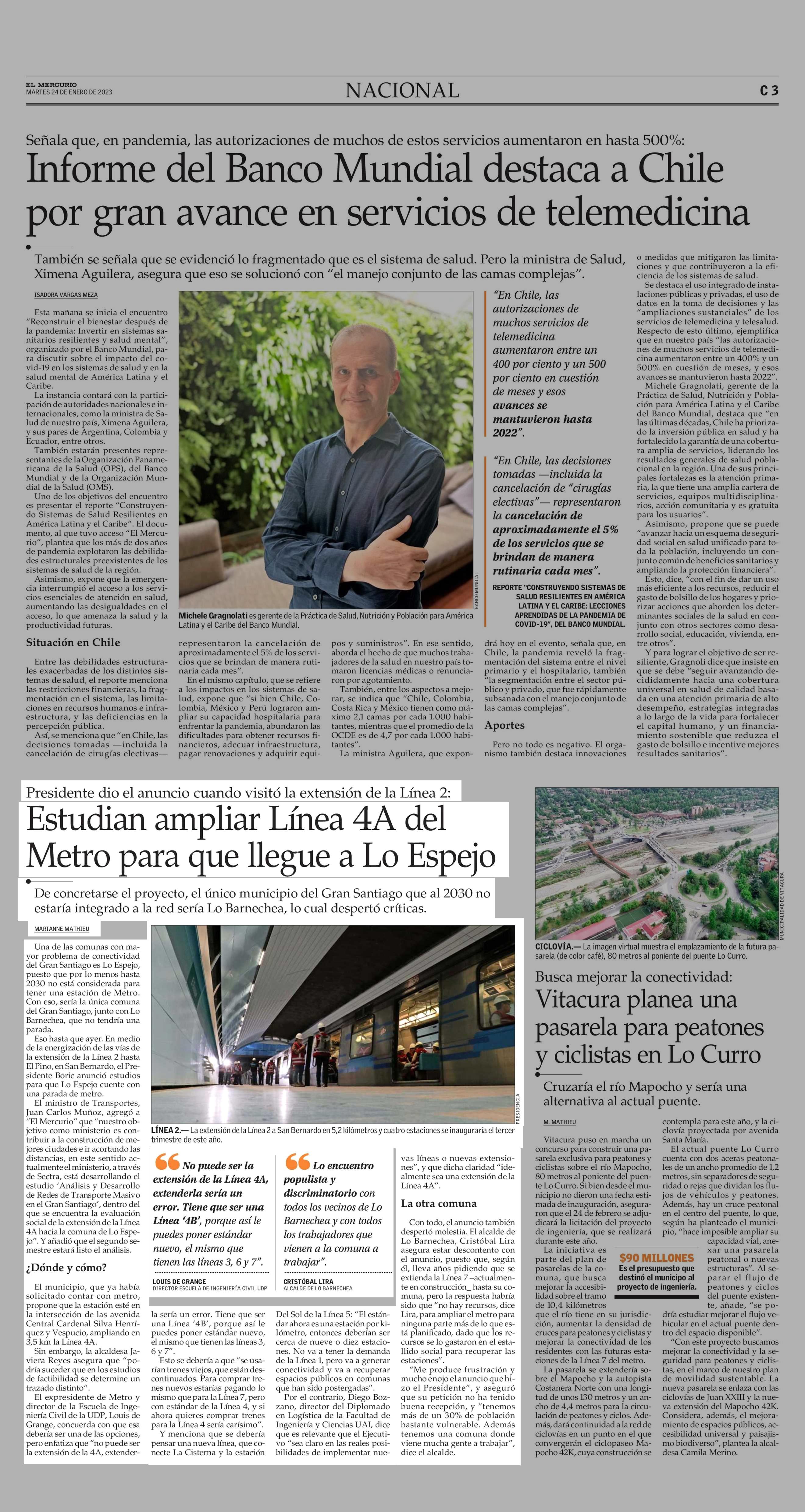 Estudian ampliar Línea 4A del Metro para que llegue a Lo Espejo 24-01-2023 El Mercurio |