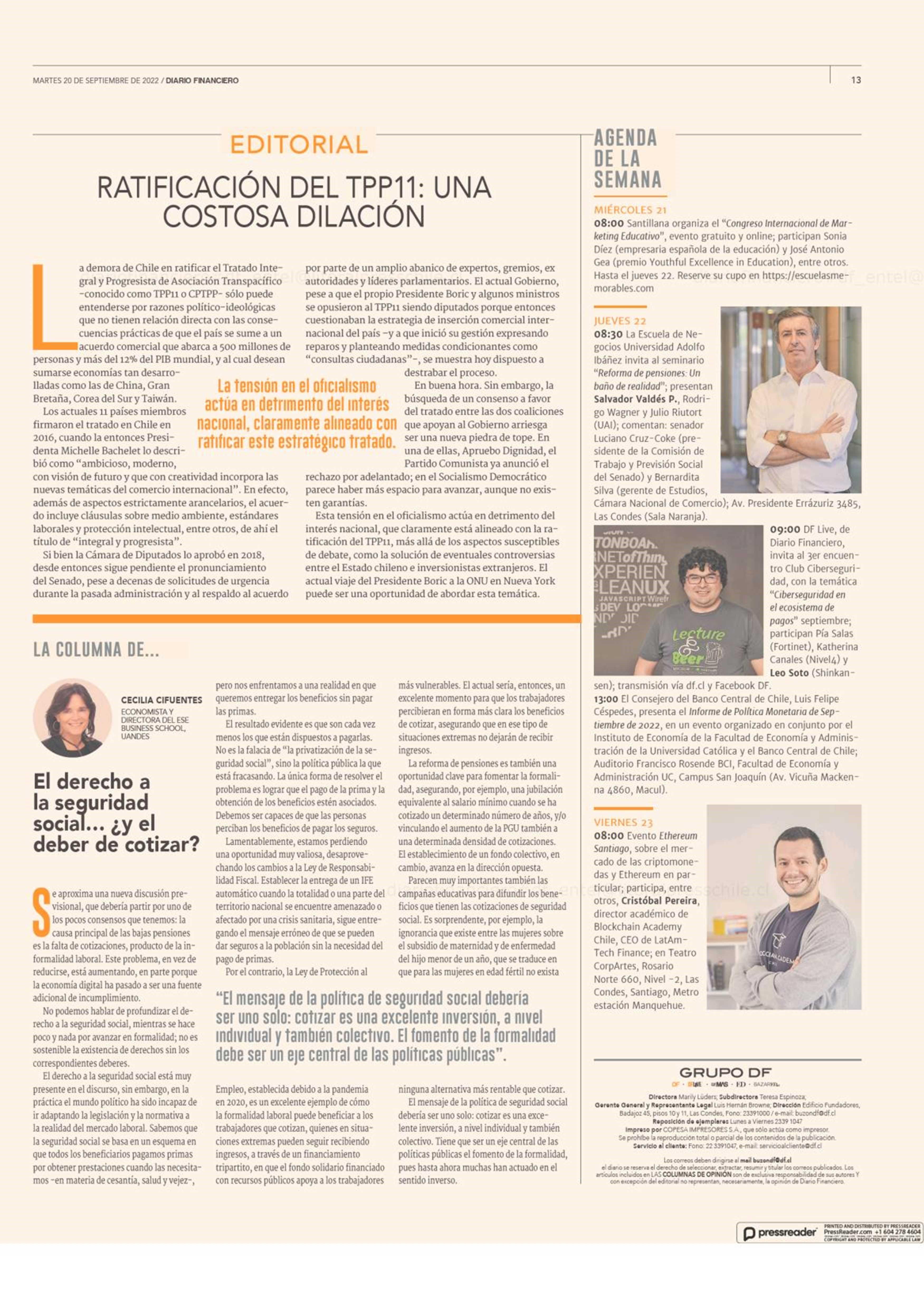 AGENDA DE LA SEMANA 20-09-2022 Diario Financiero |