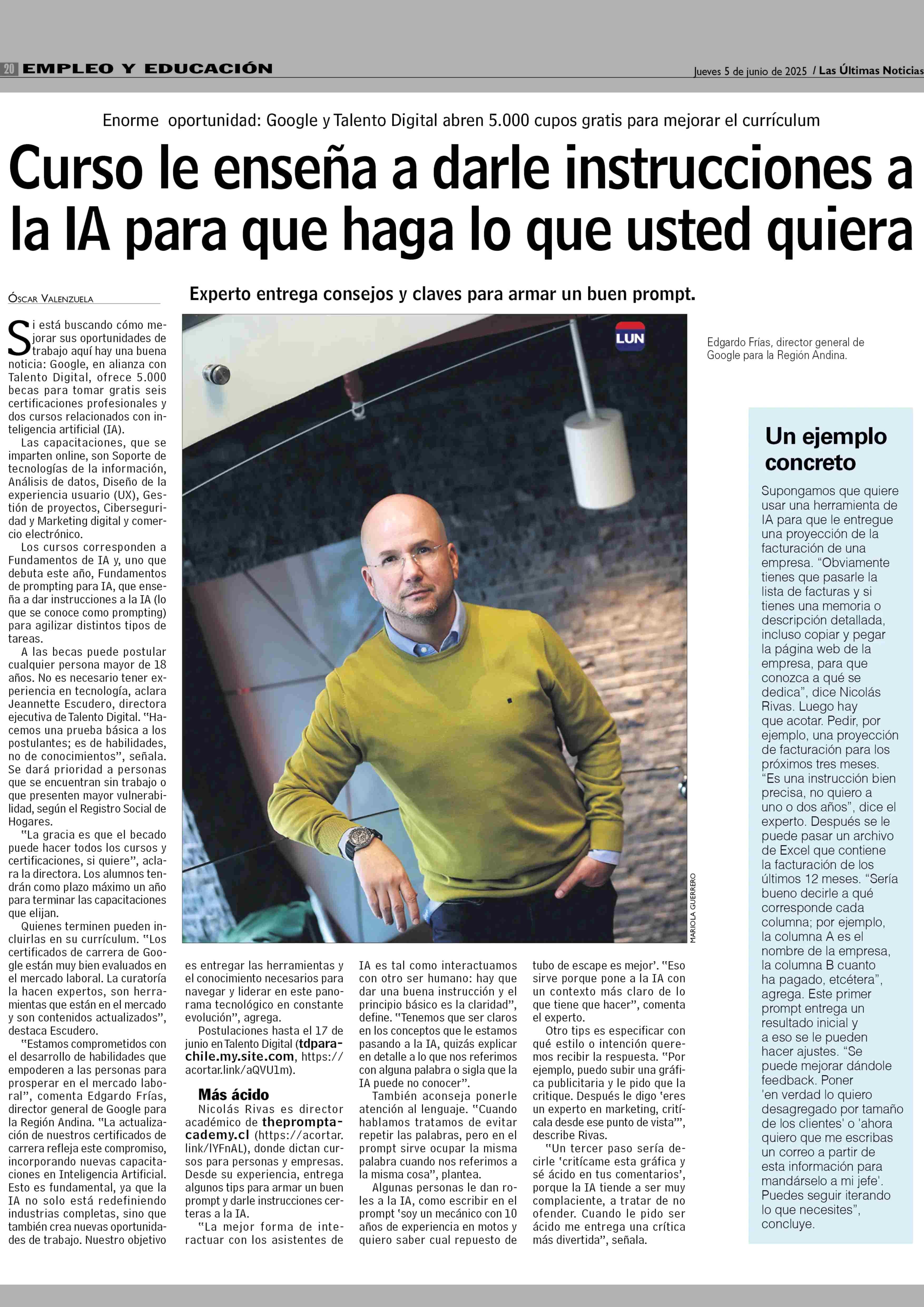 Curso le enseña a darle instrucciones a la lA para que haga lo que usted quiera 05-06-2025 Las Últimas Noticias |