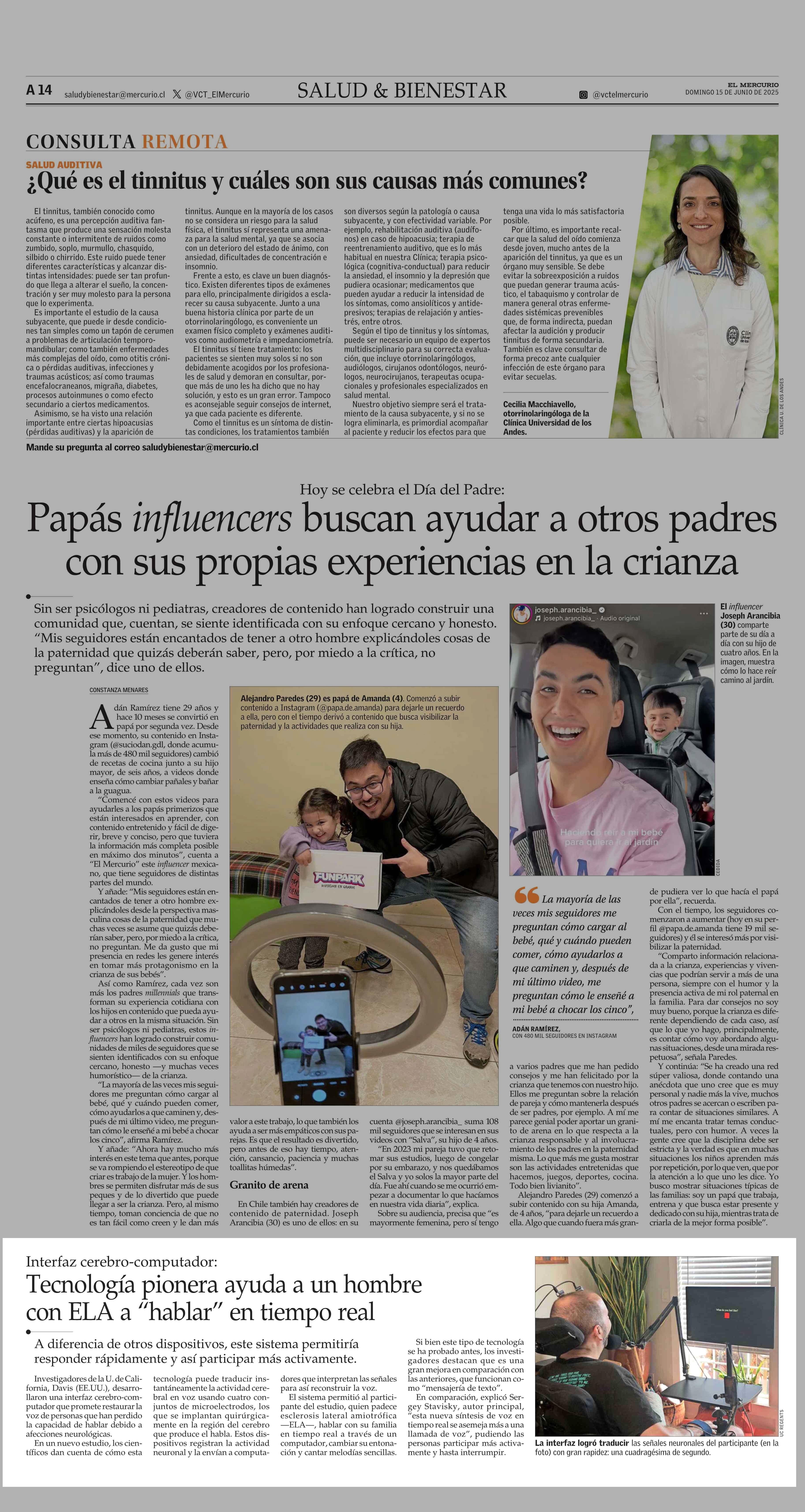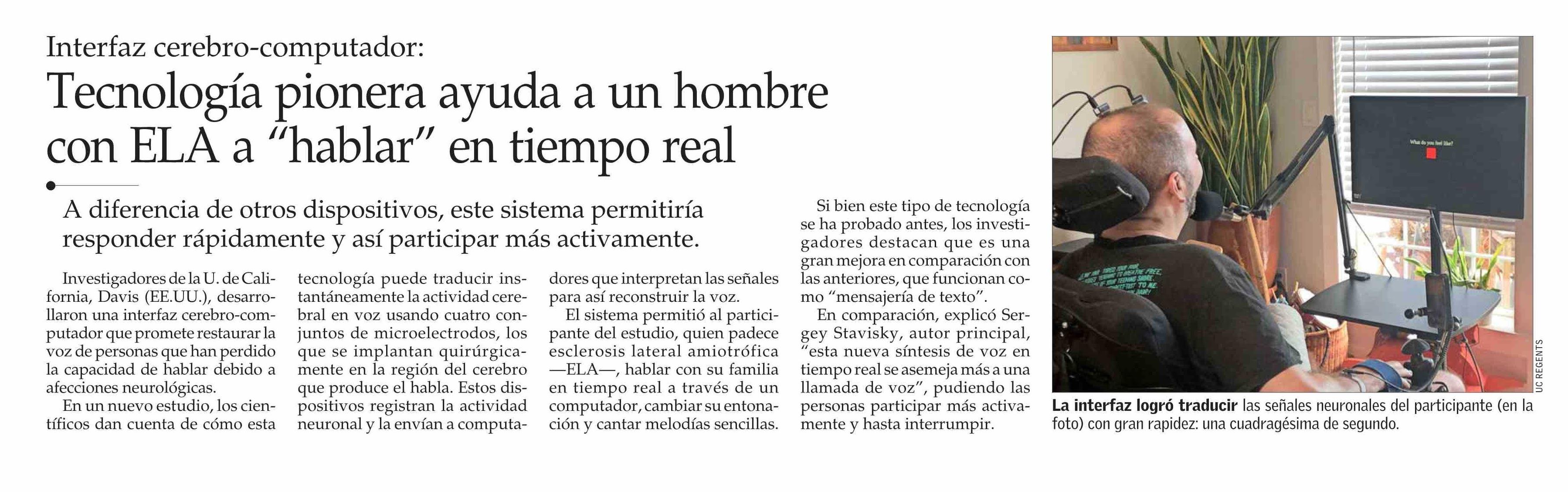Tecnología pionera ayuda a un hombre con ELA a “hablar” en tiempo real 15-06-2025 El Mercurio |