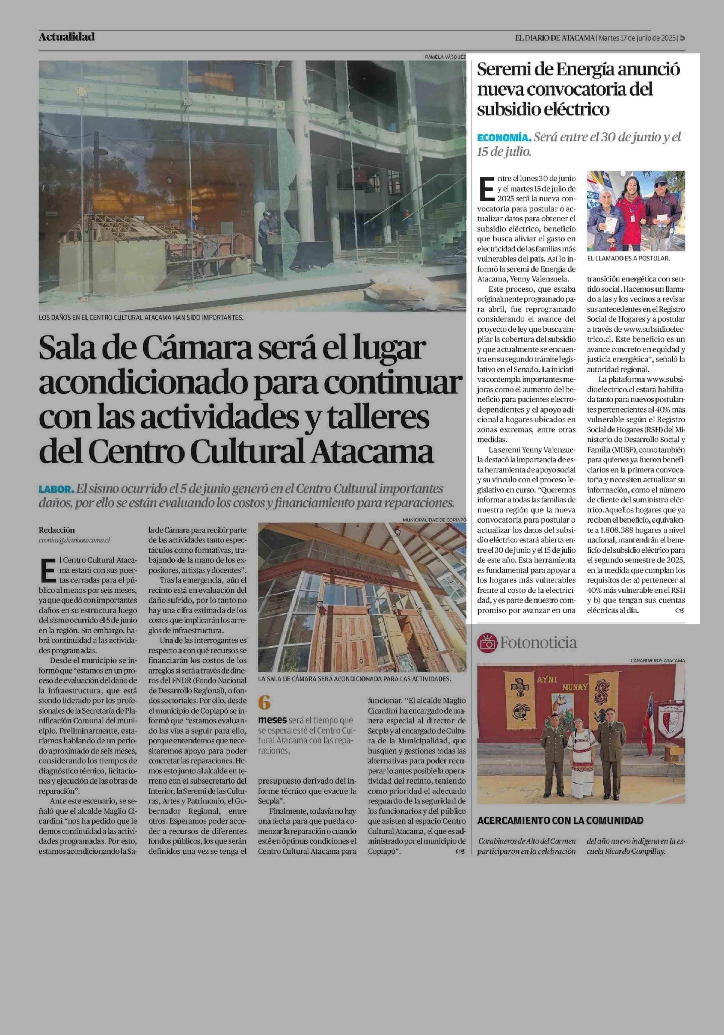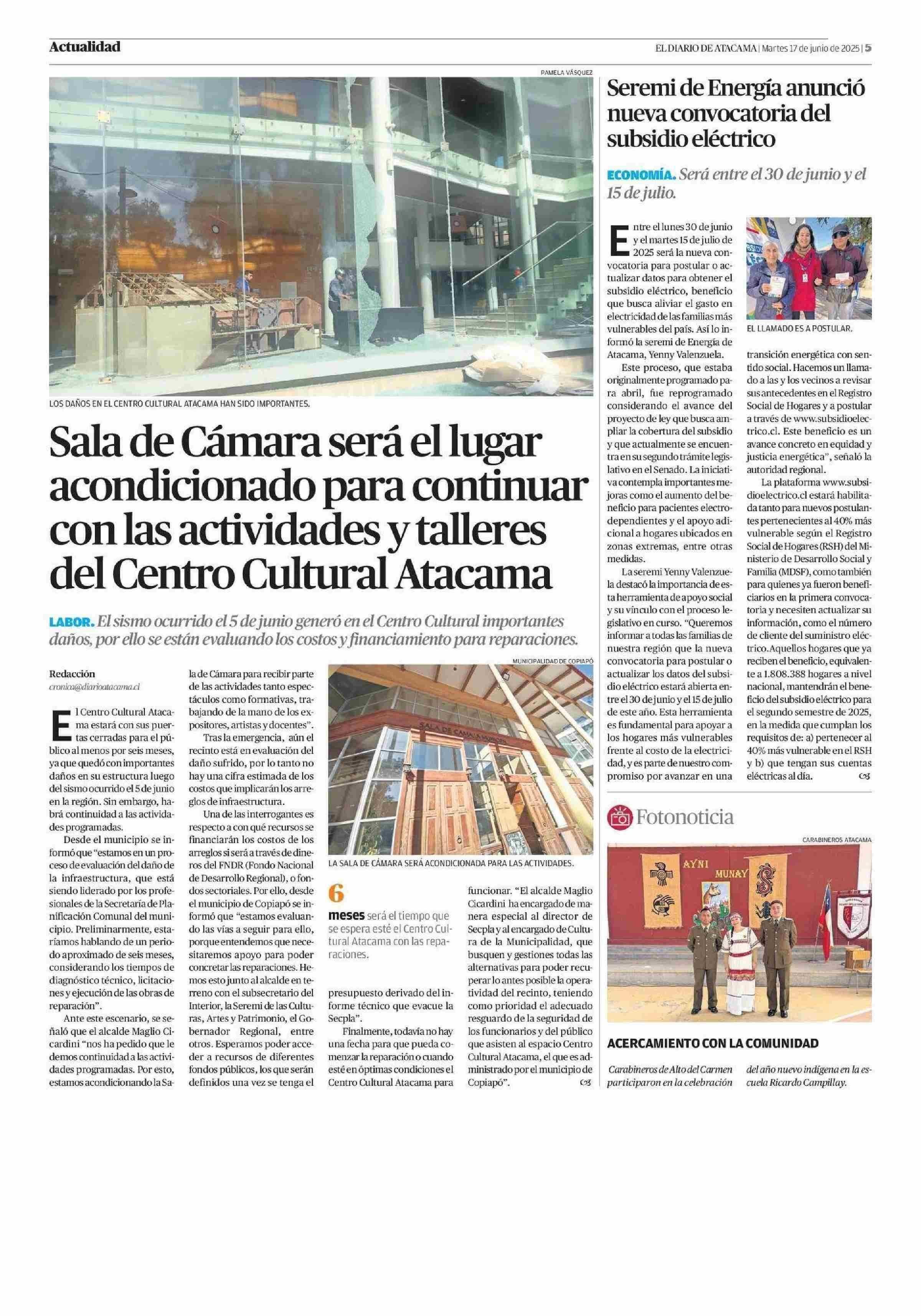 Seremi de Energía anunció nueva convocatoria del subsidio eléctrico 17-06-2025 El Diario de Atacama |