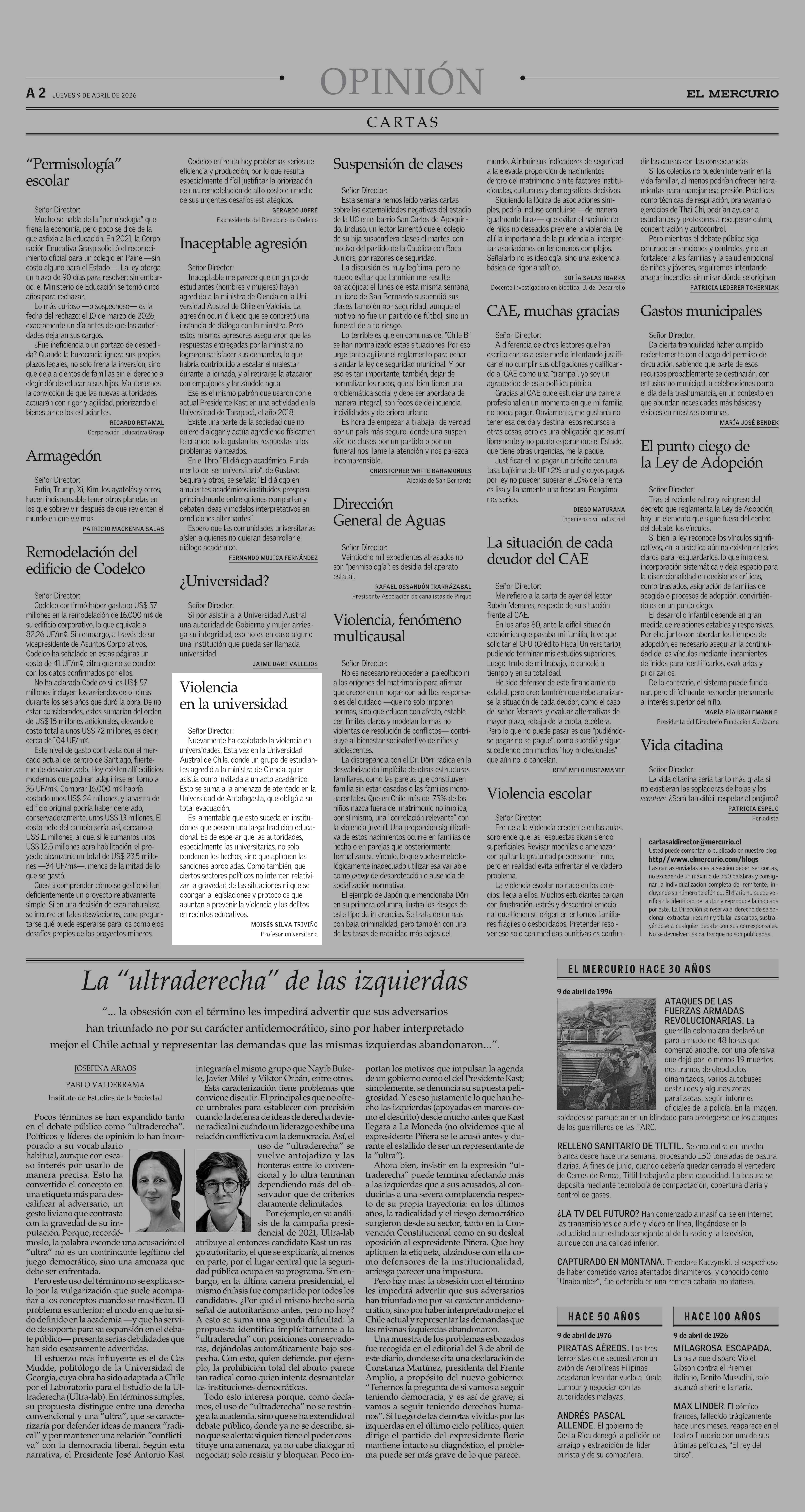 Cartas: Violencia en la universidad 09-04-2026 El Mercurio |