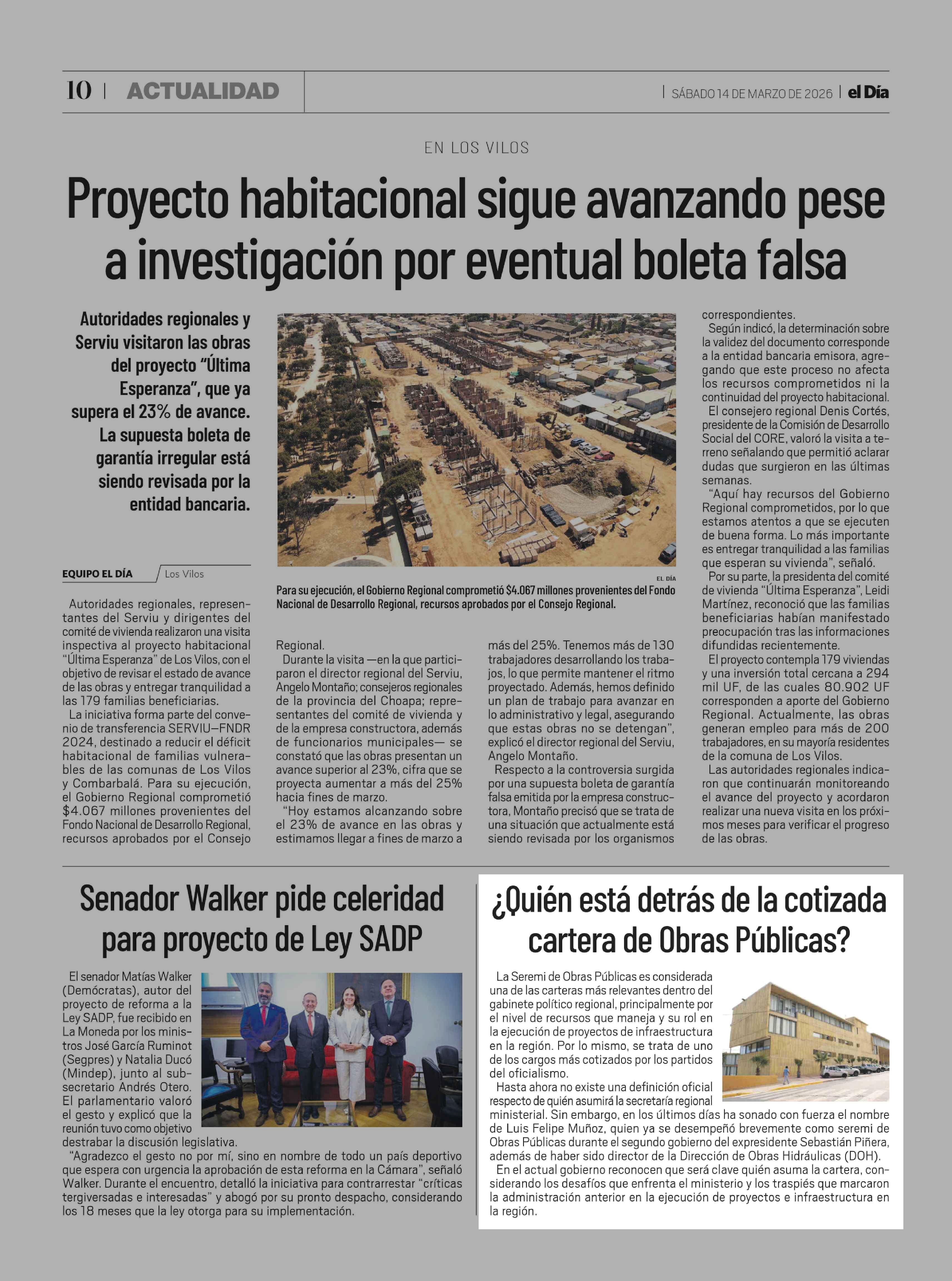 ¿Quién está detrás de la cotizada cartera de Obras Públicas? 14-03-2026 El Día |