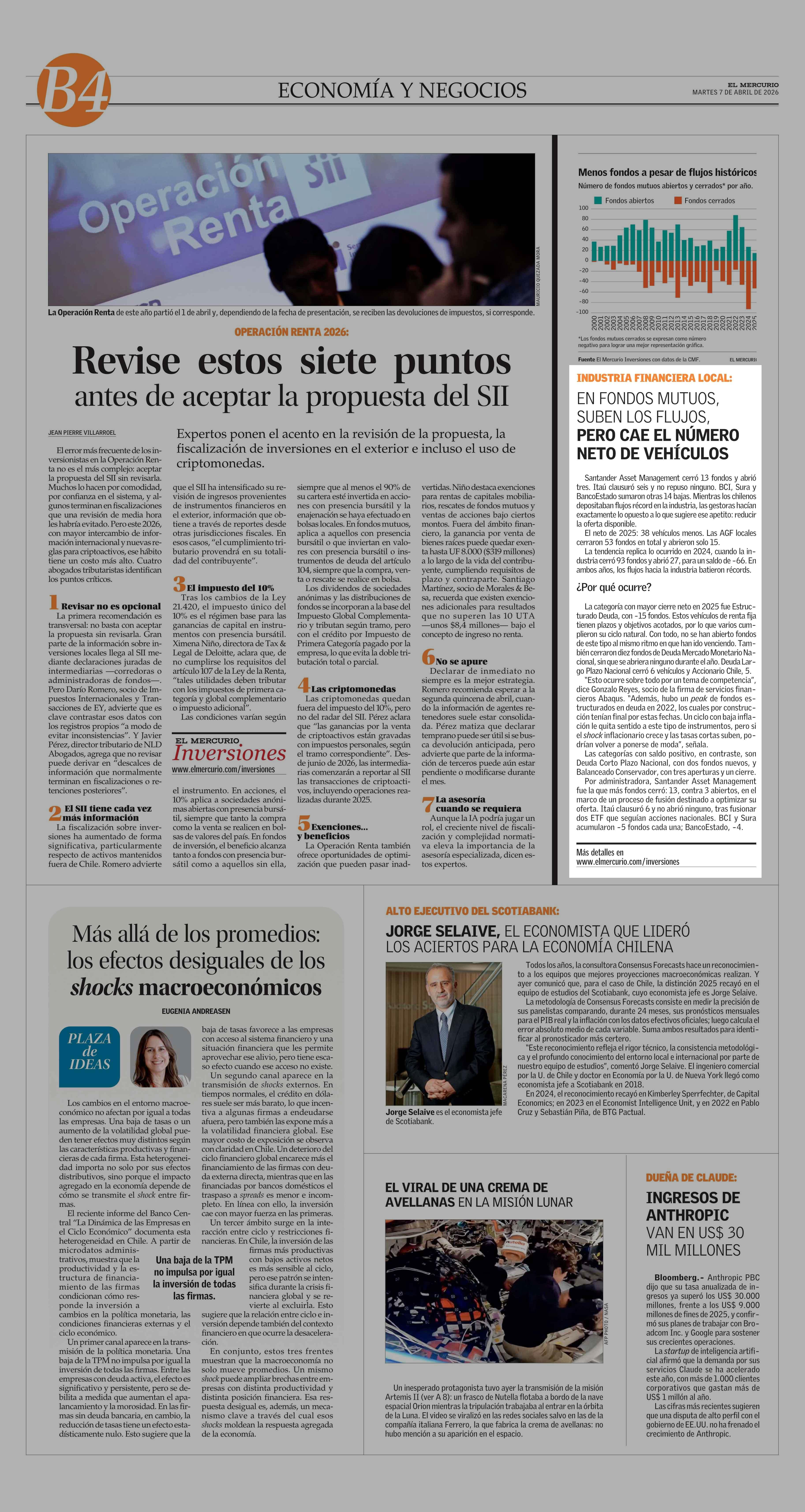 EN FONDOS MUTUOS, SUBEN LOS FLUJOS, PERO CAE EL NÚMERO NETO DE VEHÍCULOS 07-04-2026 El Mercurio |