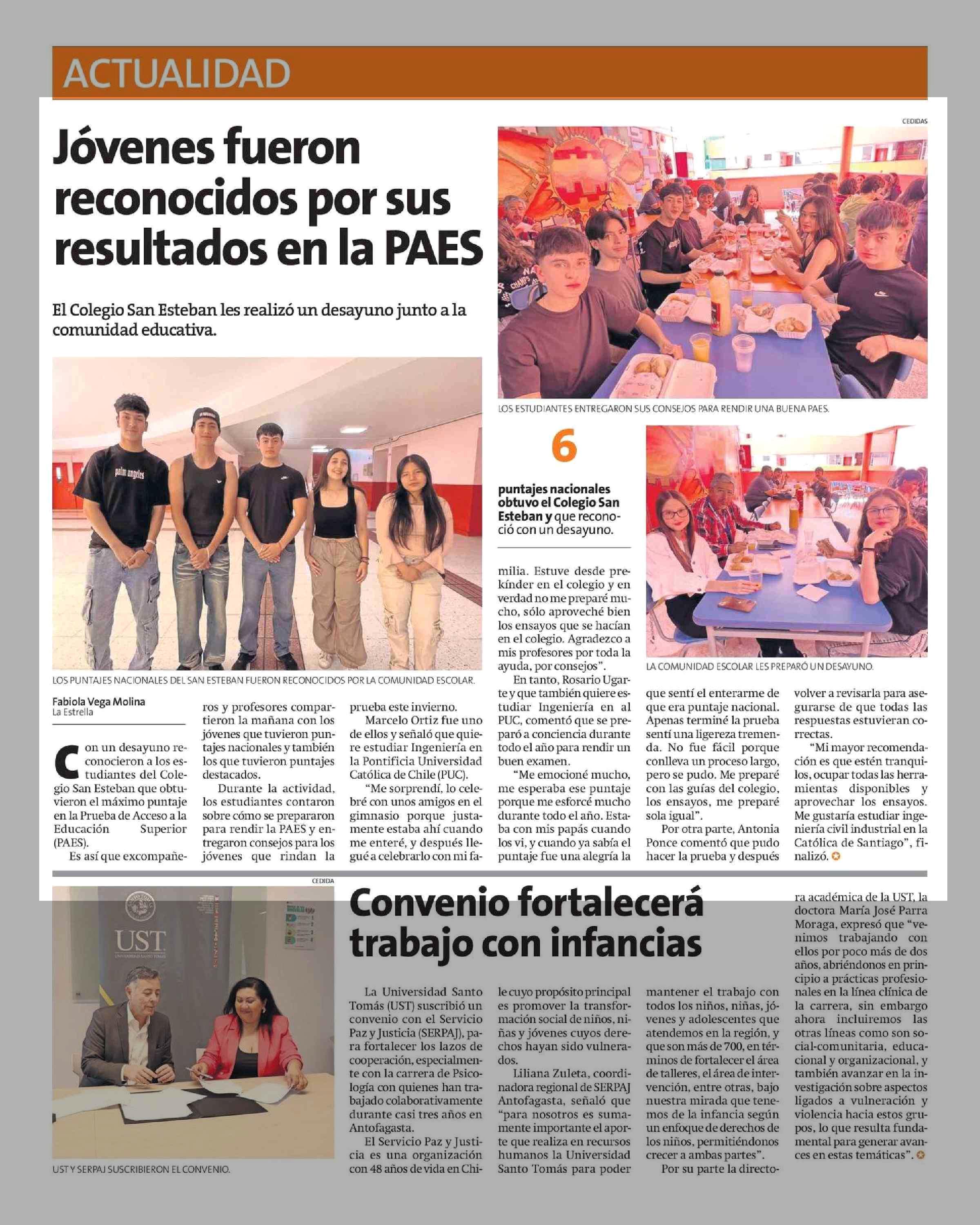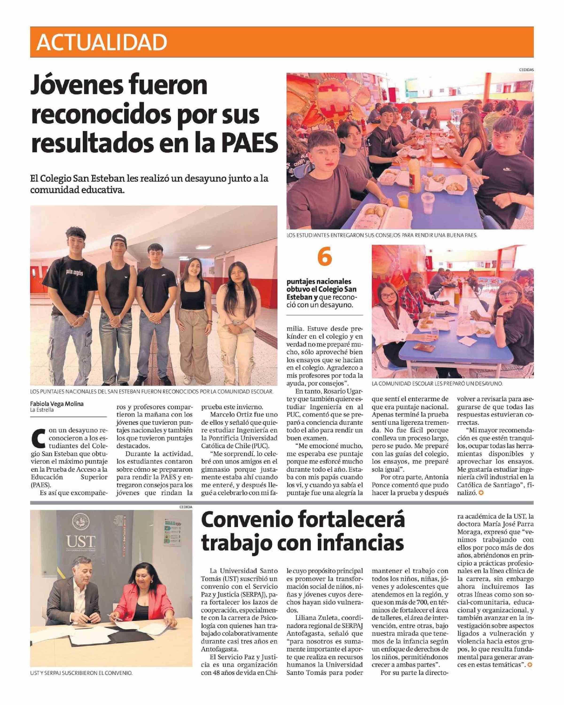 Jóvenes fueron reconocidos por sus resultados en la PAES 09-01-2025 La Estrella Del Loa |