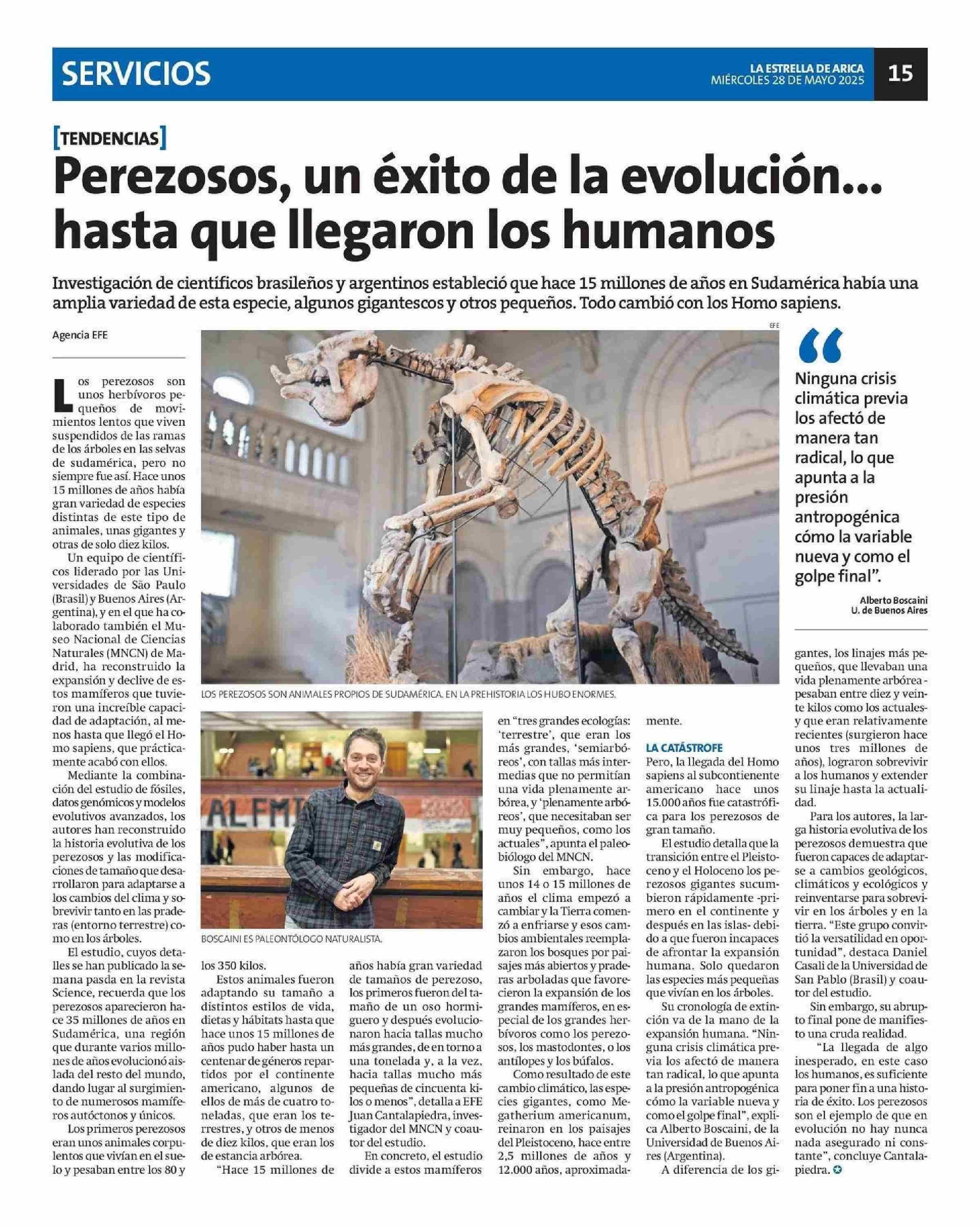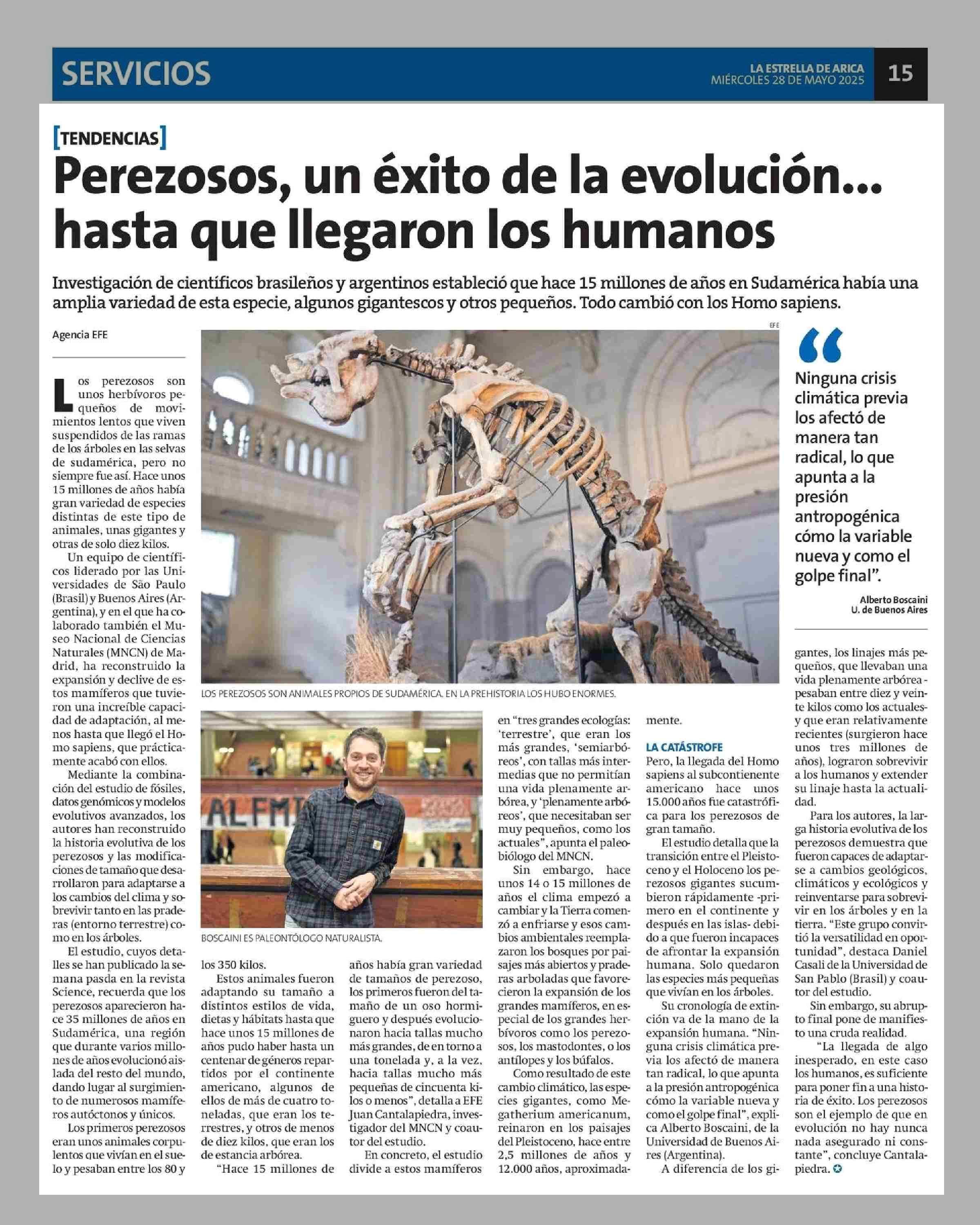 Perezosos, un éxito de la evolución.. hasta que llegaron los humanos 28-05-2025 La Estrella de Arica |