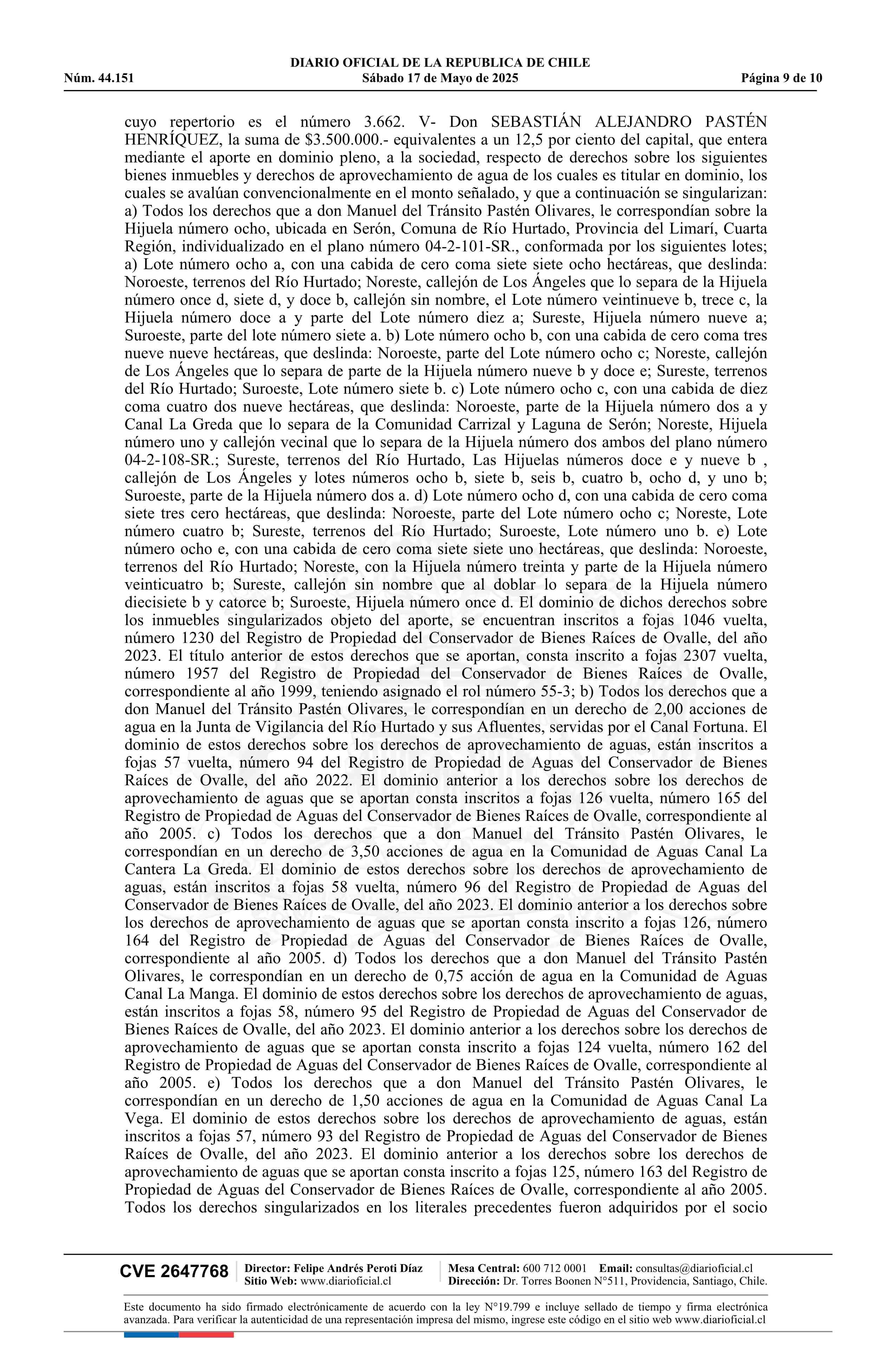 SOCIEDAD AGRÍCOLA Y COMERCIAL PASTÉN LIMITADA 17-05-2025 Diario Oficial Edición Electrónica |