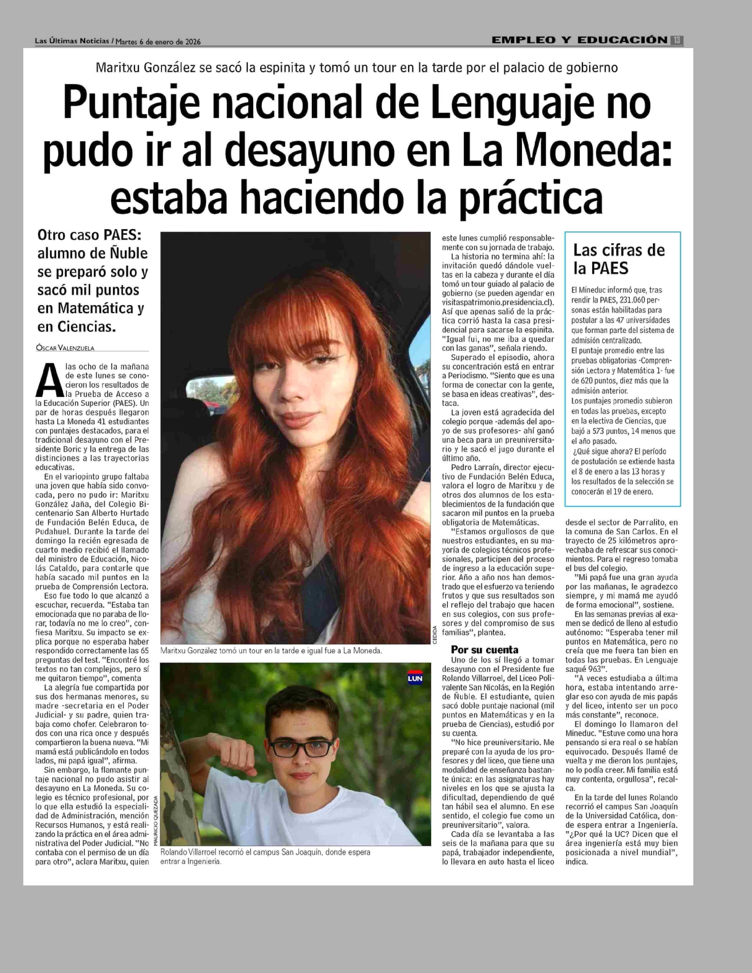 Título: Puntaje nacional de Lenguaje no pudo ir al desayuno en La Moneda: estaba haciendo la práctica