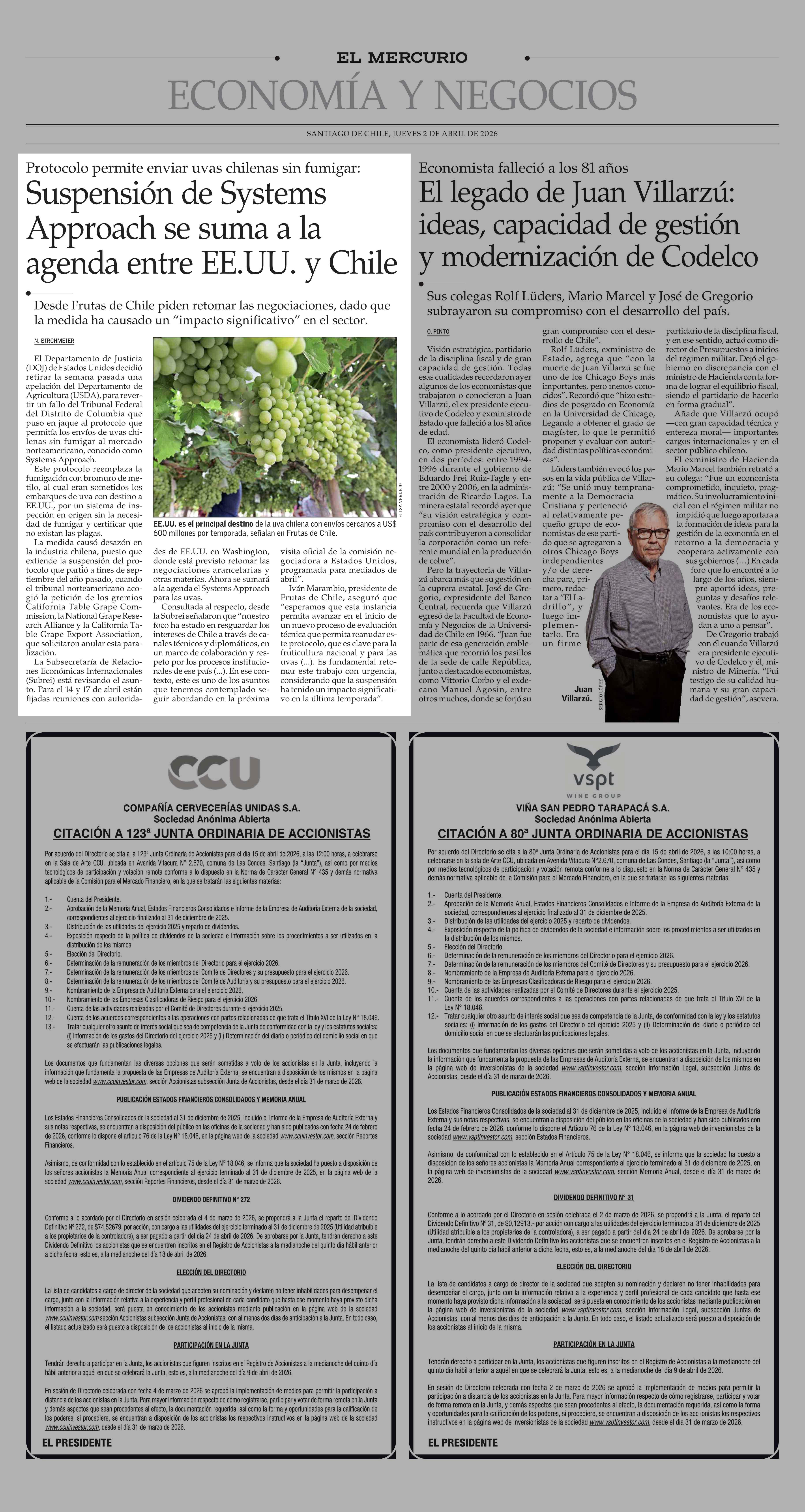 Suspensión de Systems Approach se suma a la agenda entre EE.UU. y Chile 02-04-2026 El Mercurio |