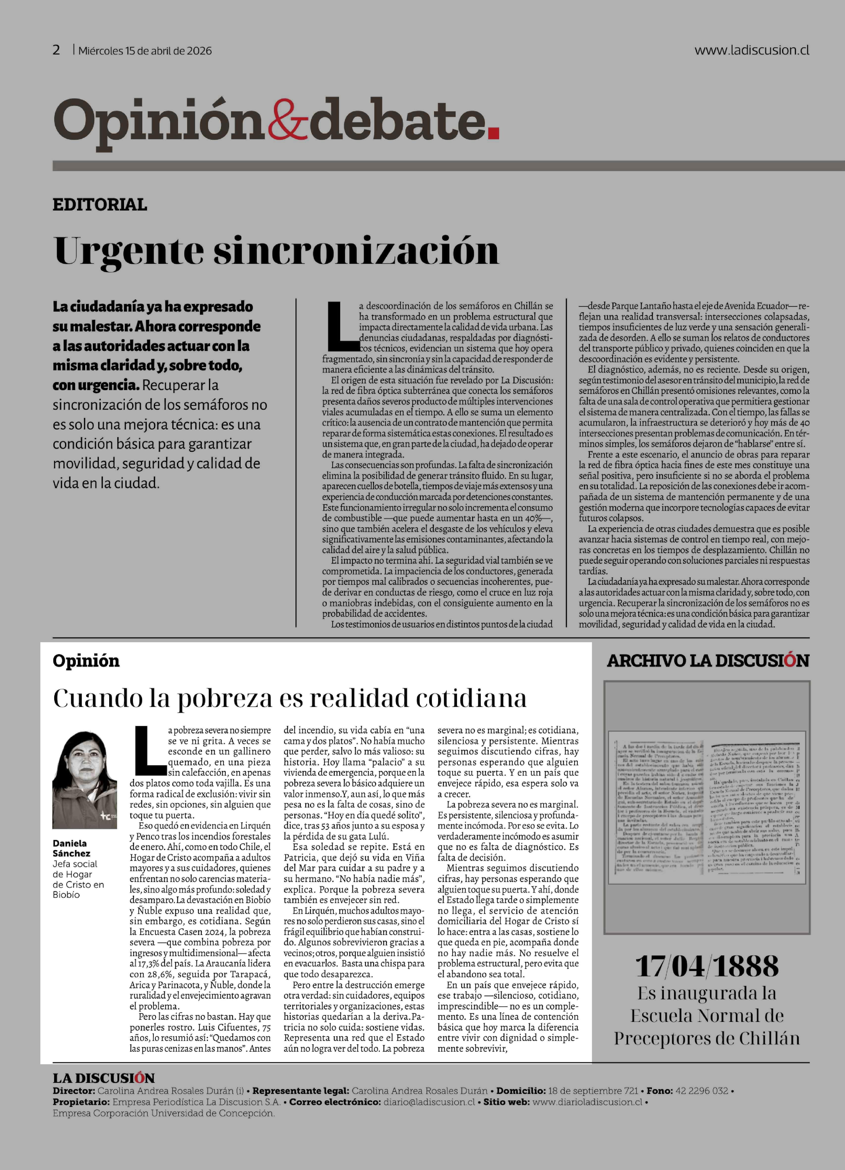 Columnas de Opinión: Cuando la pobreza es realidad cotidiana 15-04-2026 La Discusión |
