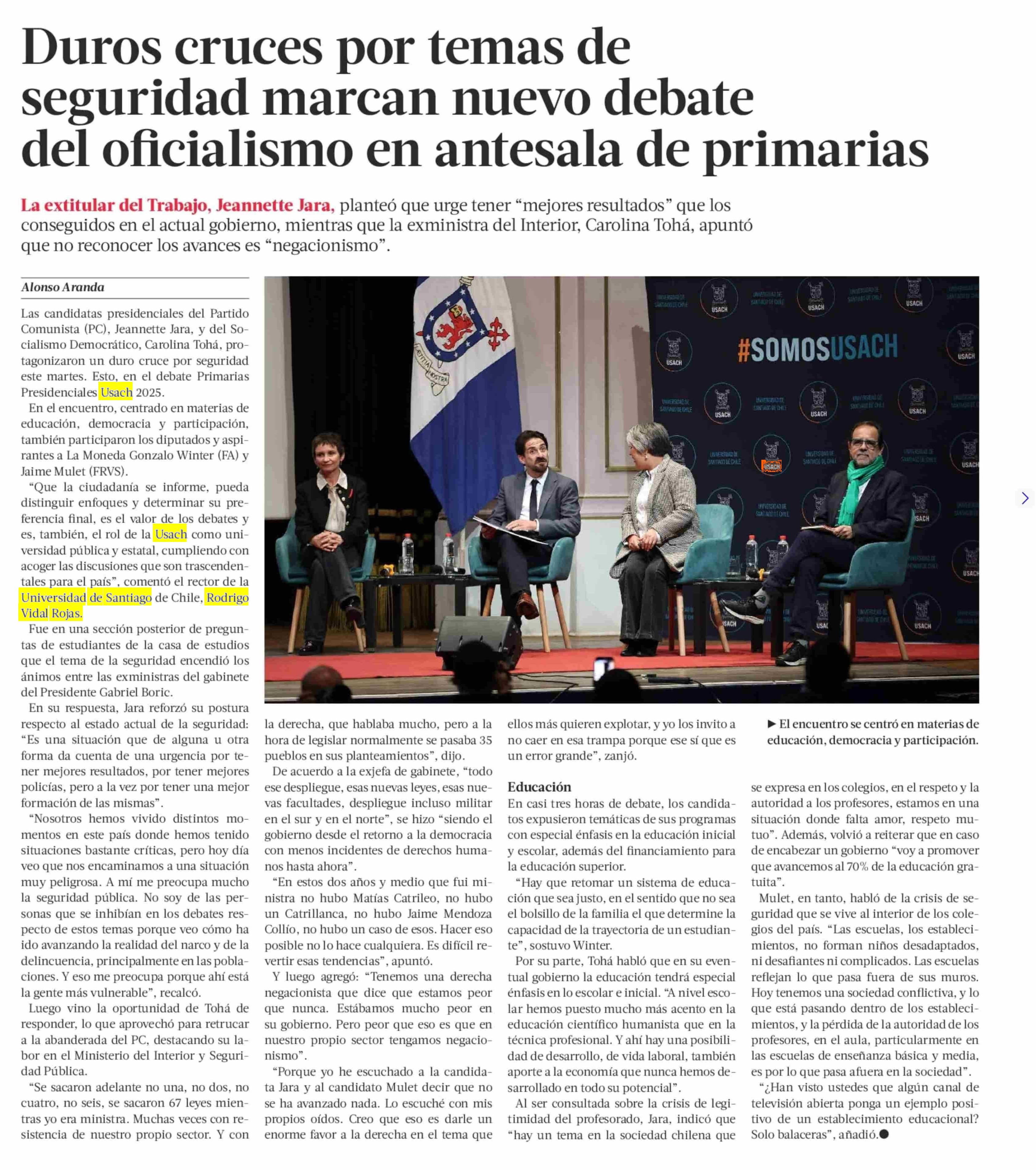 Título: Duros cruces por temas de seguridad marcan nuevo debate del oficialismo en antesala de primarias