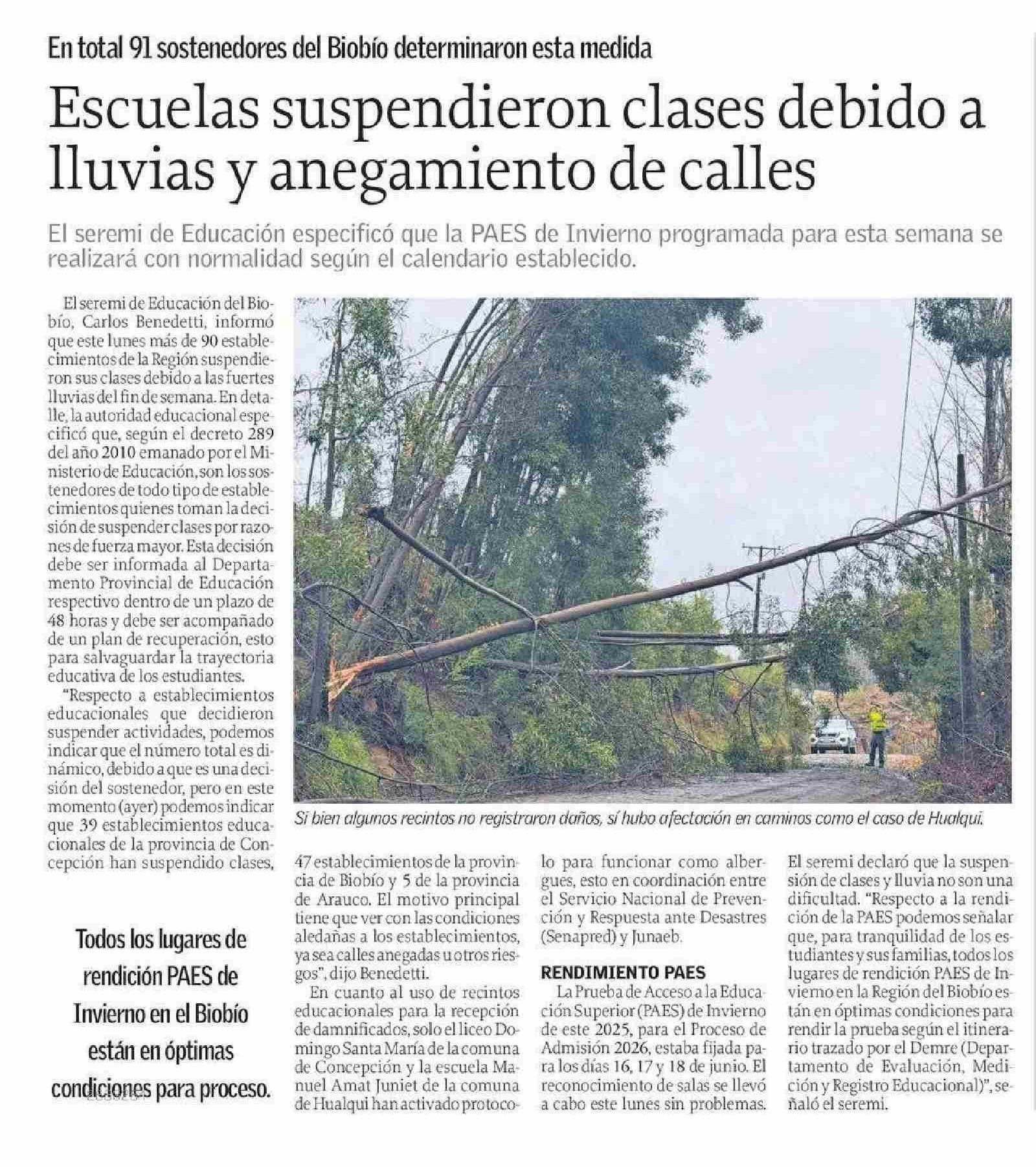 Escuelas suspendieron clases debido a lluvias y anegamiento de calles 17-06-2025 El Sur |
