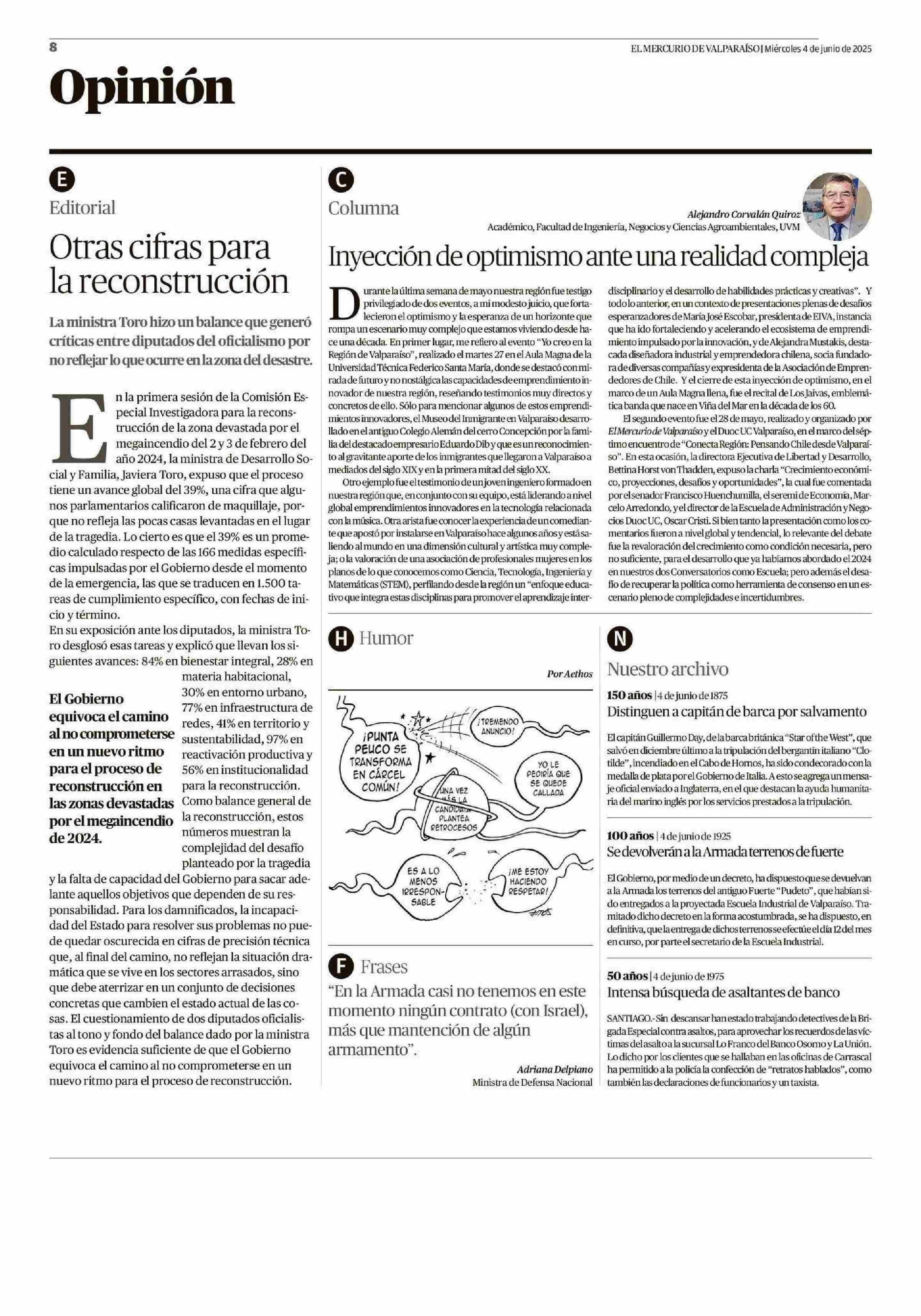 Inyección de optimismo ante una realidad compleja 04-06-2025 El Mercurio de Valparaíso |