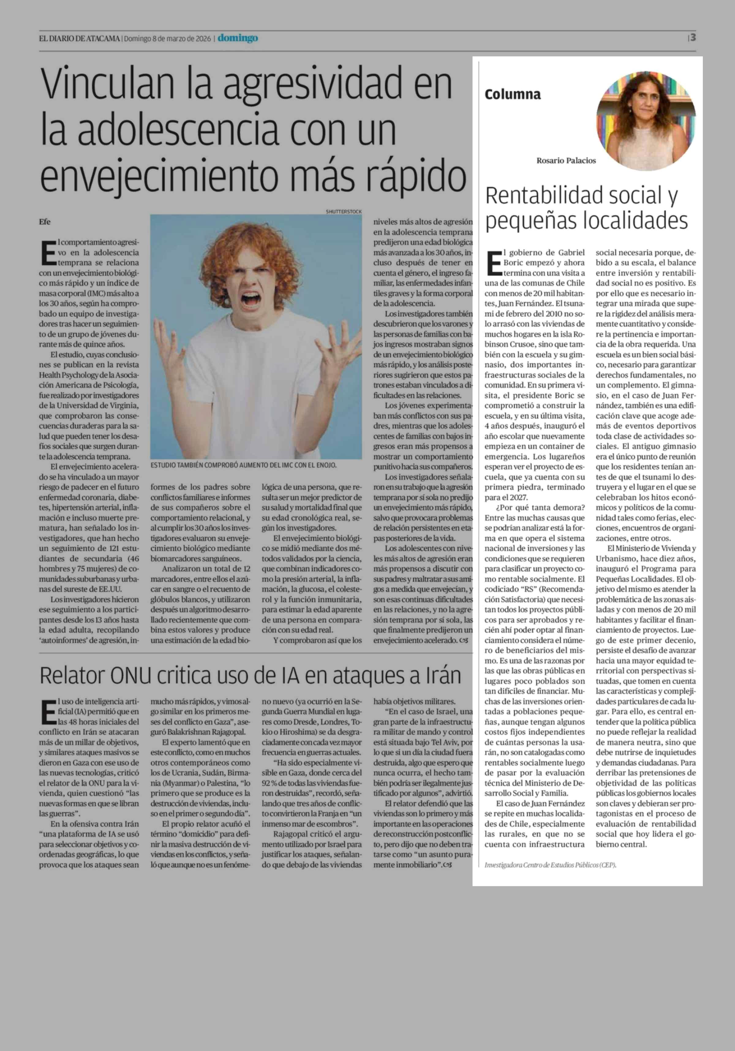 Columnas de Opinión: Rentabilidad social y pequeñas localidades 08-03-2026 El Diario de Atacama |
