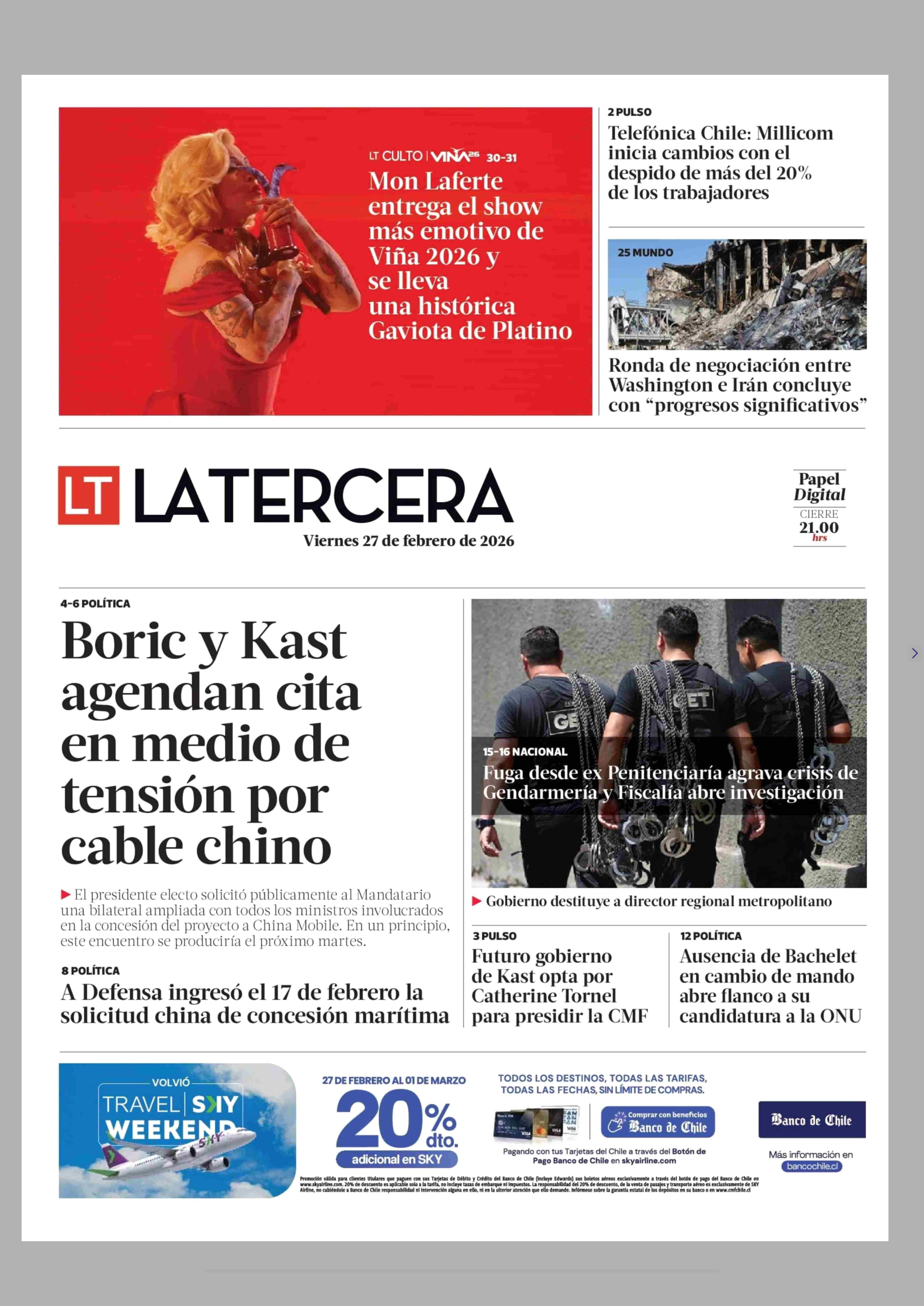 Fecha: 27-02-2026 Sector: Portada Región: Región Metropolitana de Santiago
