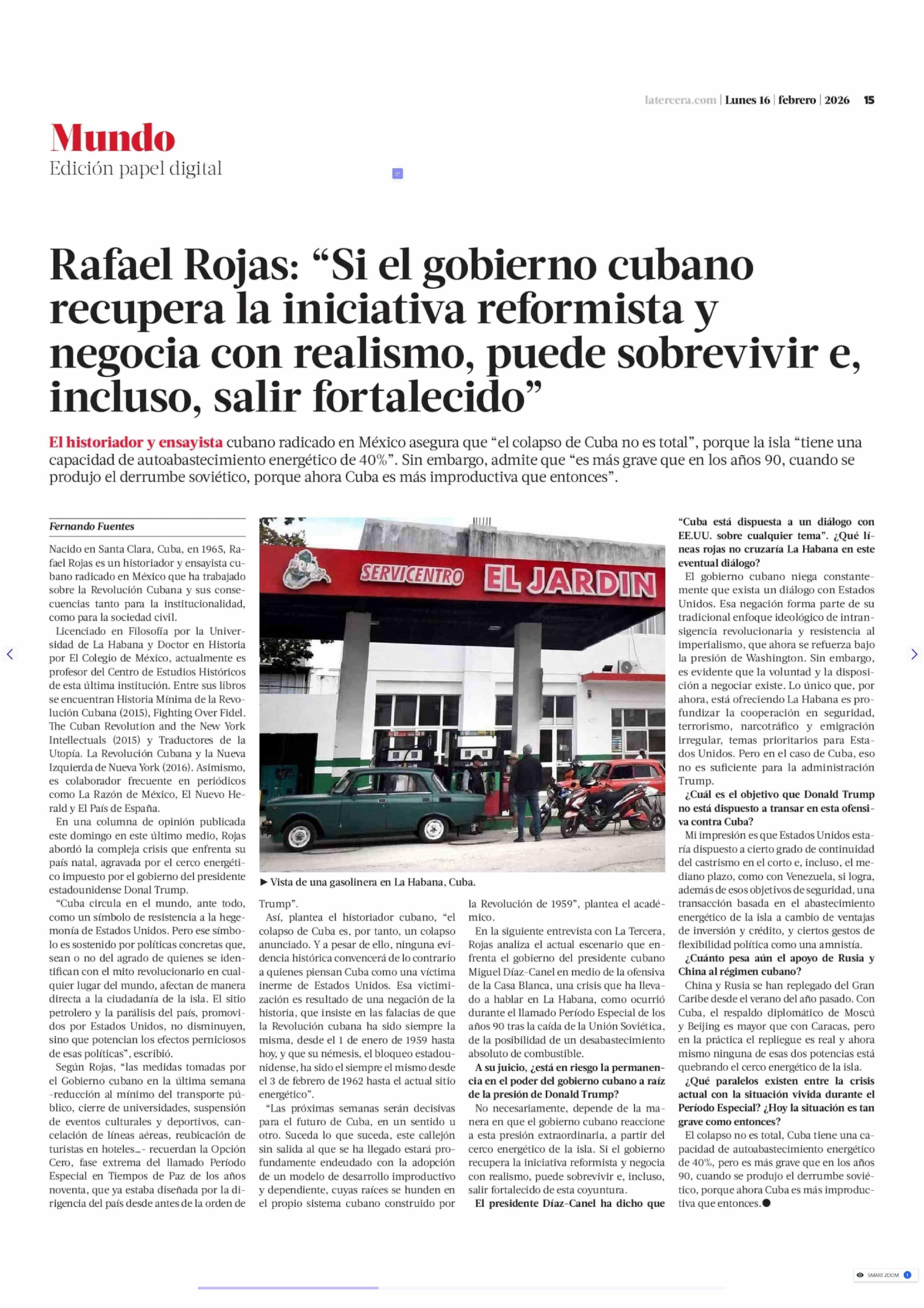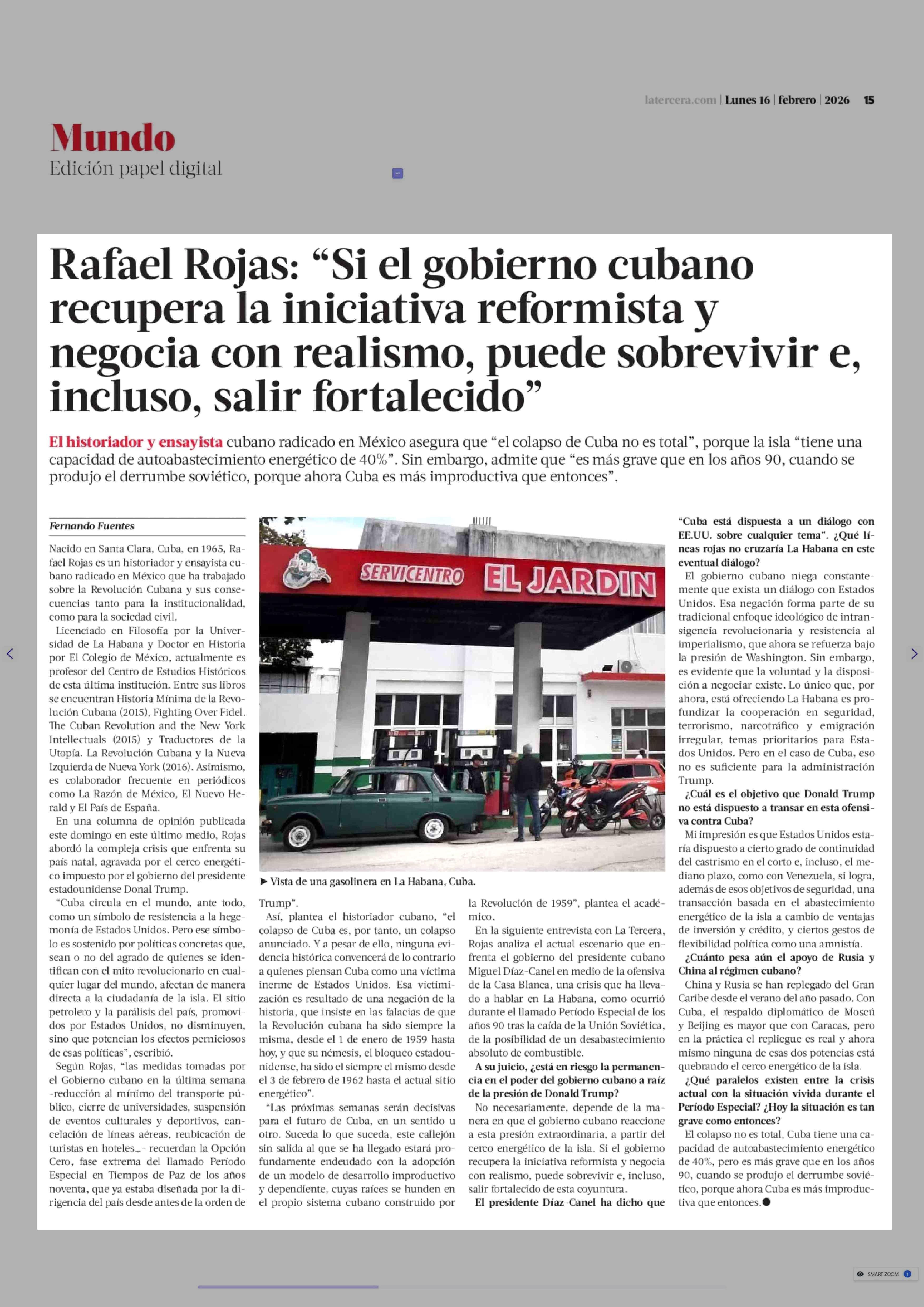 Título: Rafael Rojas: "Si el gobierno cubano recupera la iniciativa reformista y negocia con realismo, puede sobrevivir e, incluso, salir fortalecido"