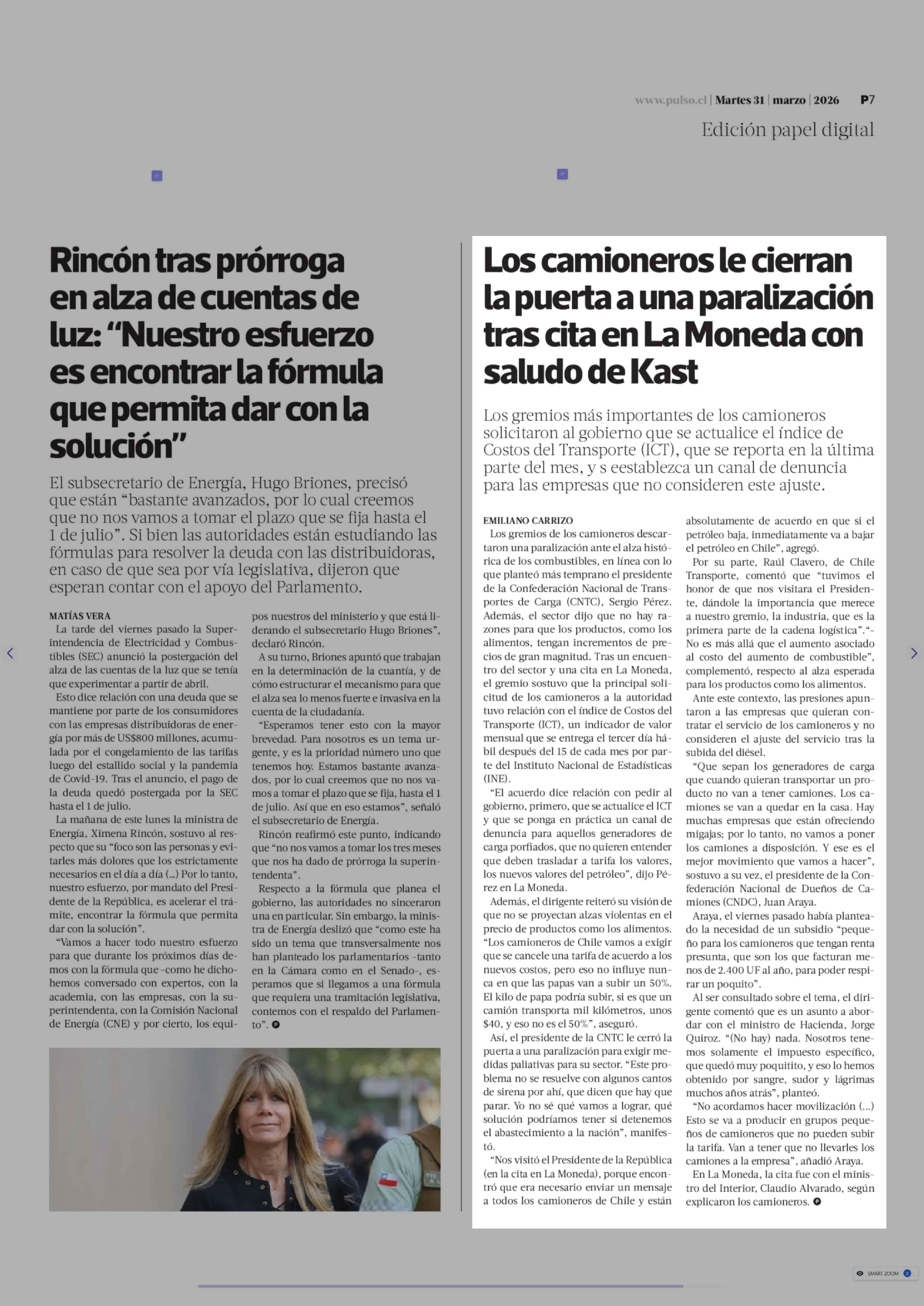| Título: | Los camioneros le cierran la puerta a una paralización tras cita en La Moneda con saludo de Kast |
