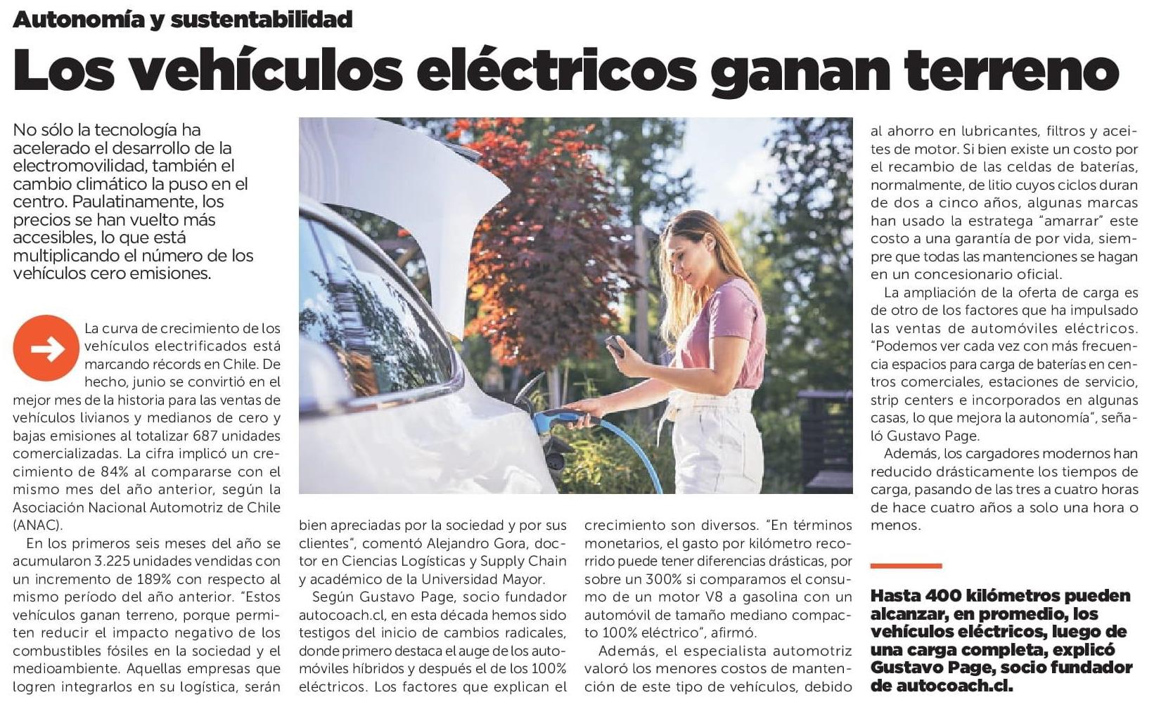 Los vehículos eléctricos ganan terreno 31-07-2022 La Tercera |