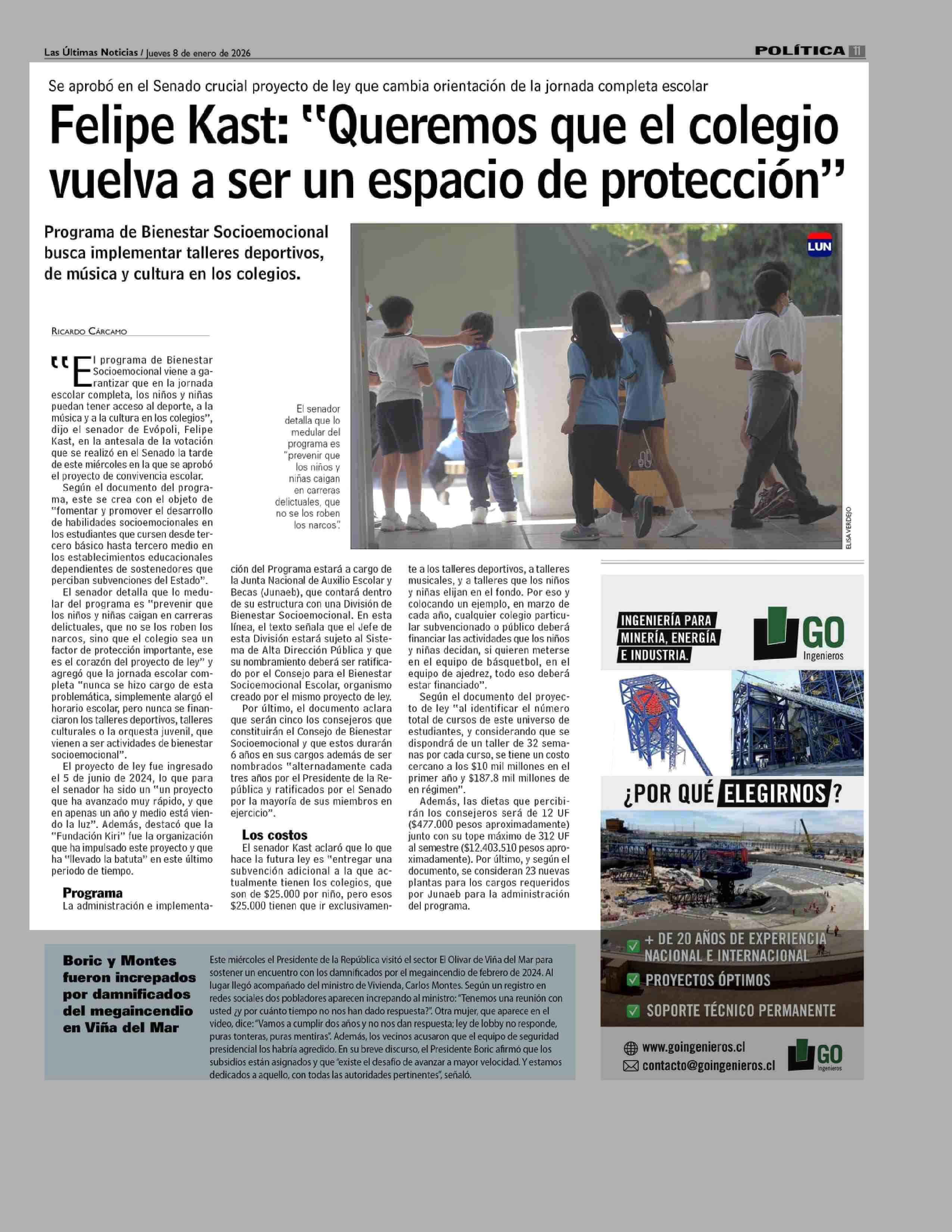 Felipe Kast: "Queremos que el colegio vuelva a ser un espacio de protección" 08-01-2026 Las Últimas Noticias |