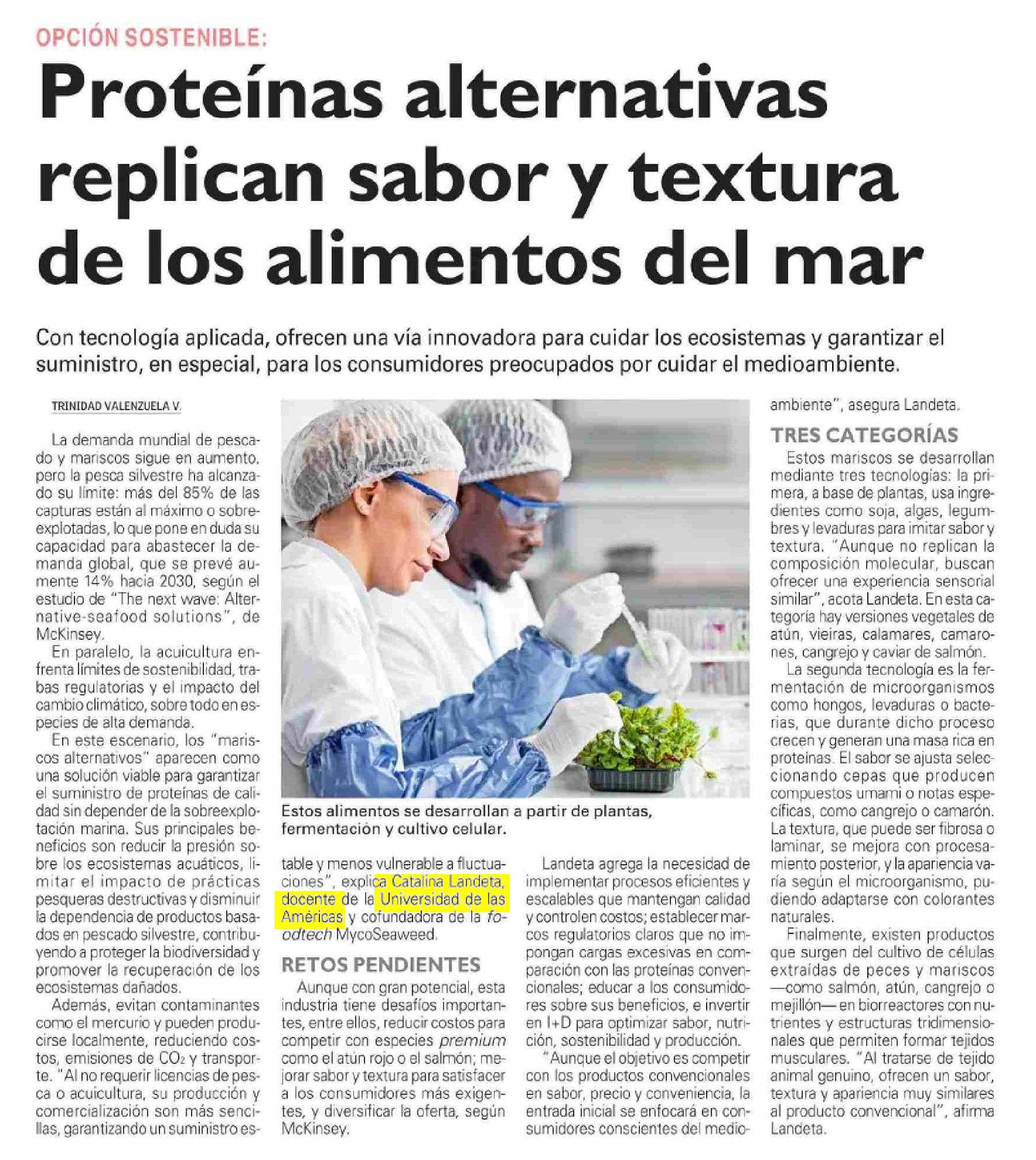 Proteínas alternativas replican sabor y textura de los alimentos del mar 27-05-2025 El Mercurio |