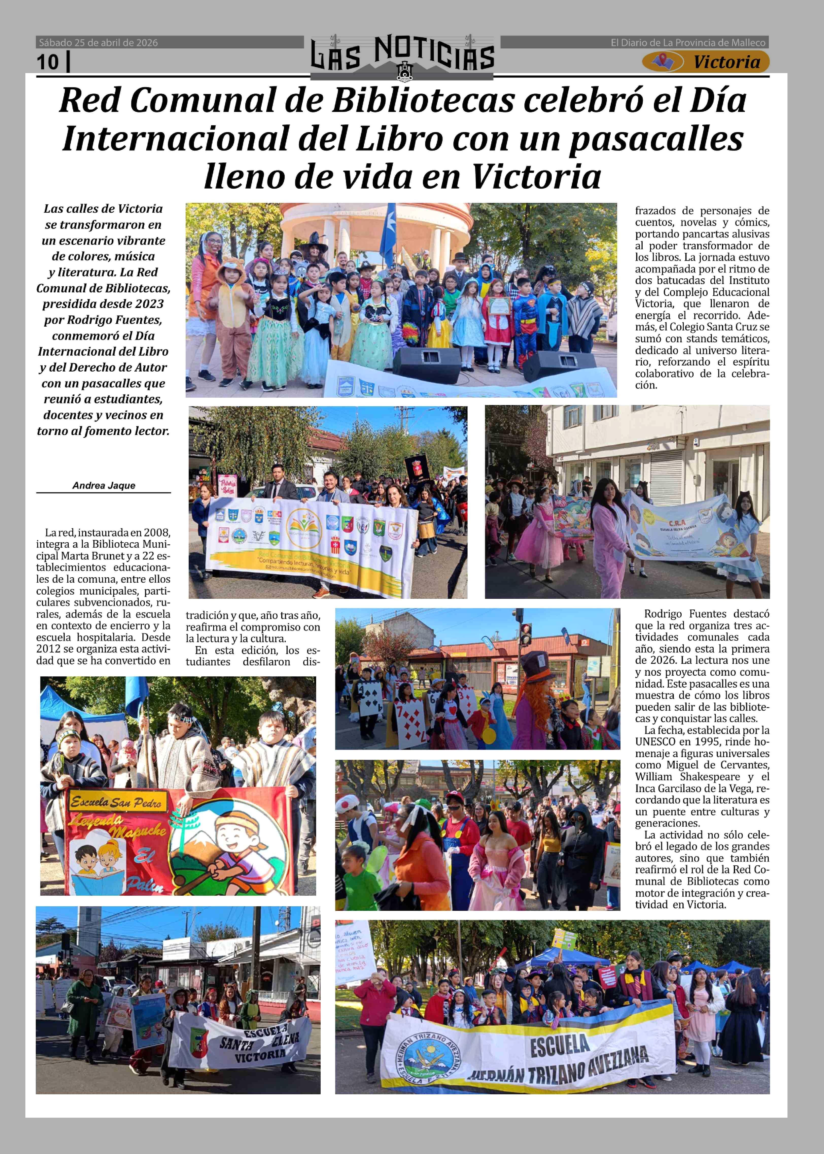 | Título: | Red Comunal de Bibliotecas celebró el Día Internacional del Libro con un pasacalles lleno de vida en Victoria |