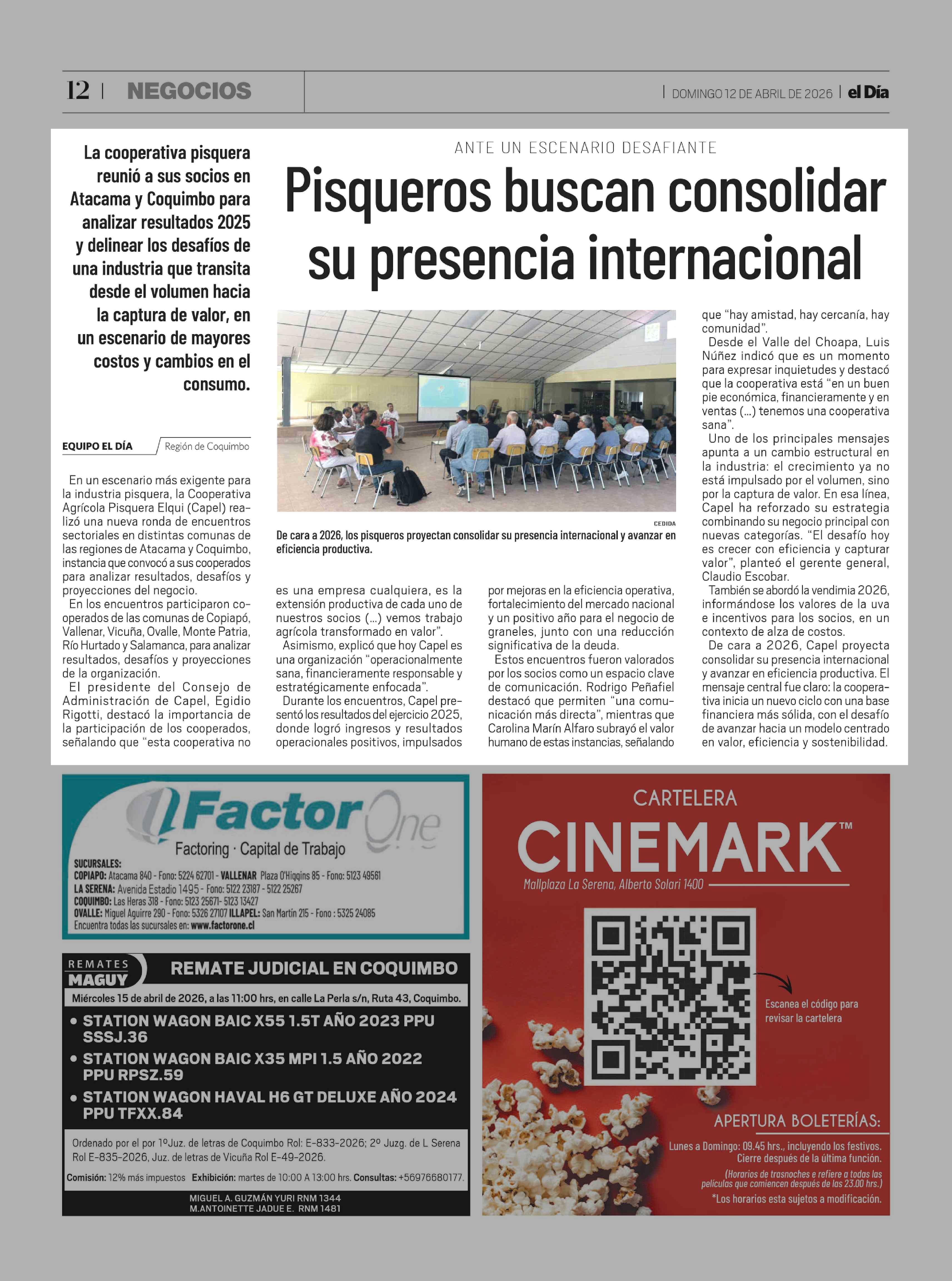 Pisqueros buscan consolidar su presencia internacional 12-04-2026 El Día |