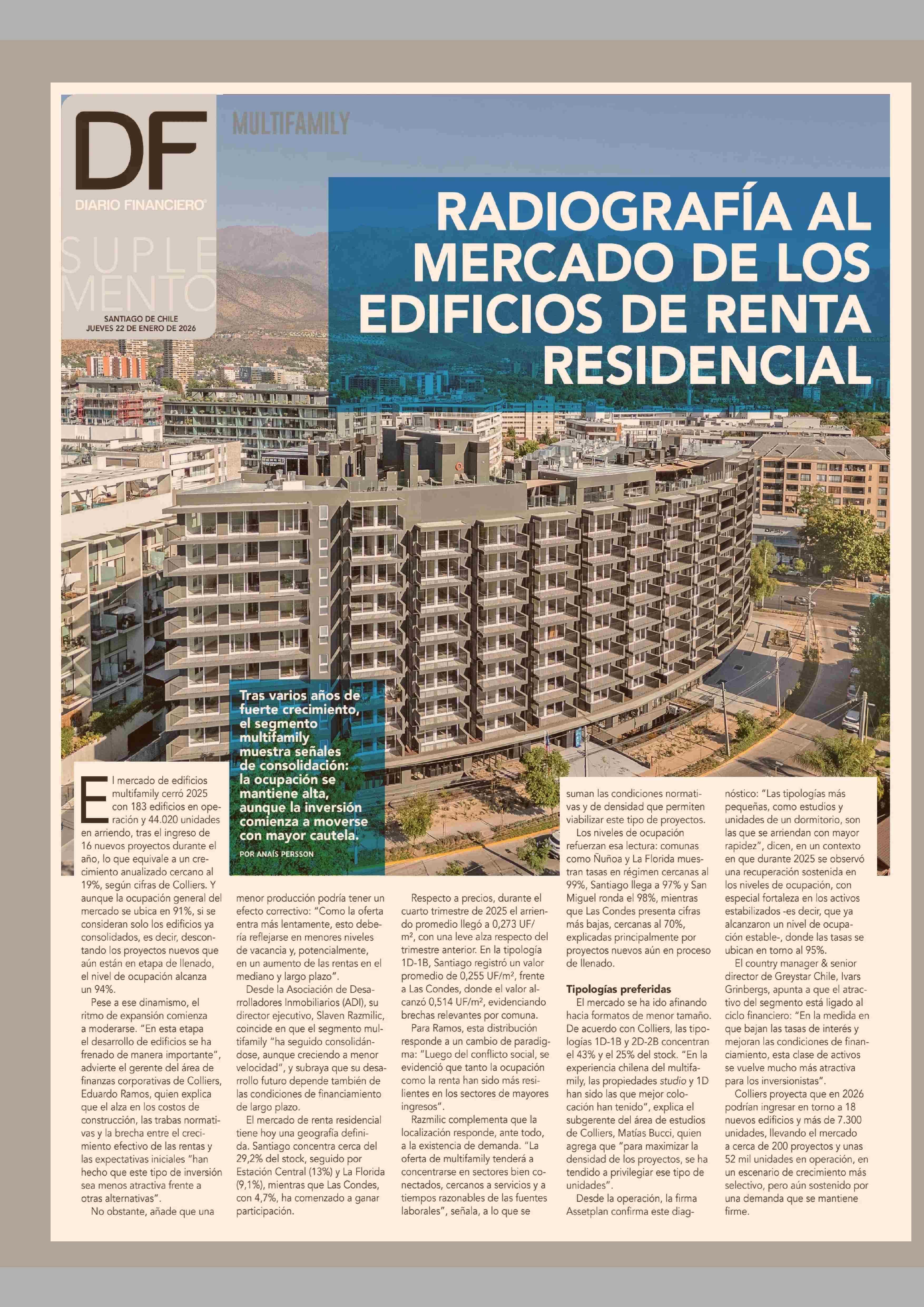 RADIOGRAFÍA AL MERCADO DE LOS EDIFICIOS DE RENTA RESIDENCIAL 22-01-2026 Diario Financiero |