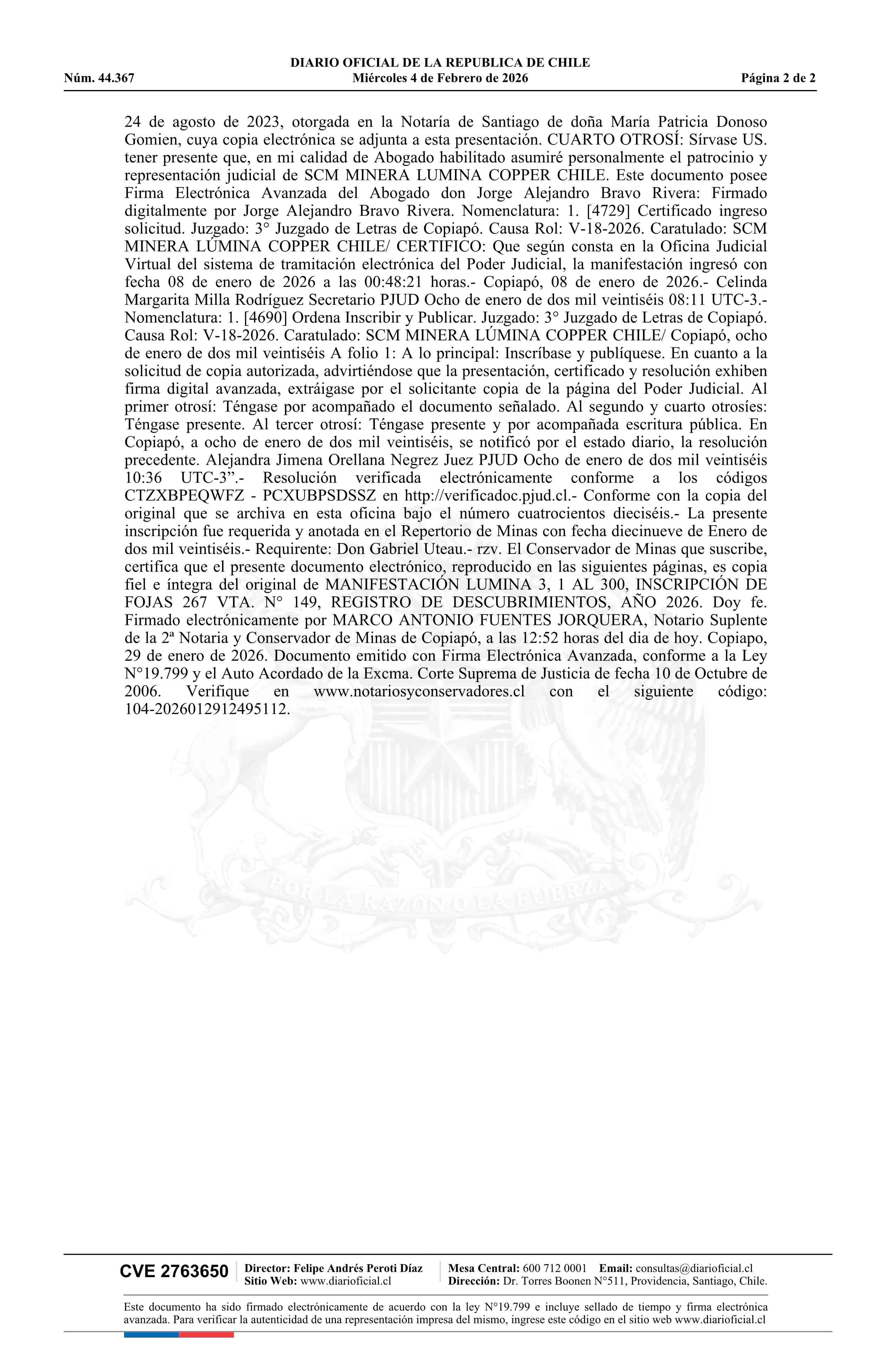 04-02-2026 DIARIO OFICIAL CHILE - BOLETÍN OFICIAL DE MINERÍA