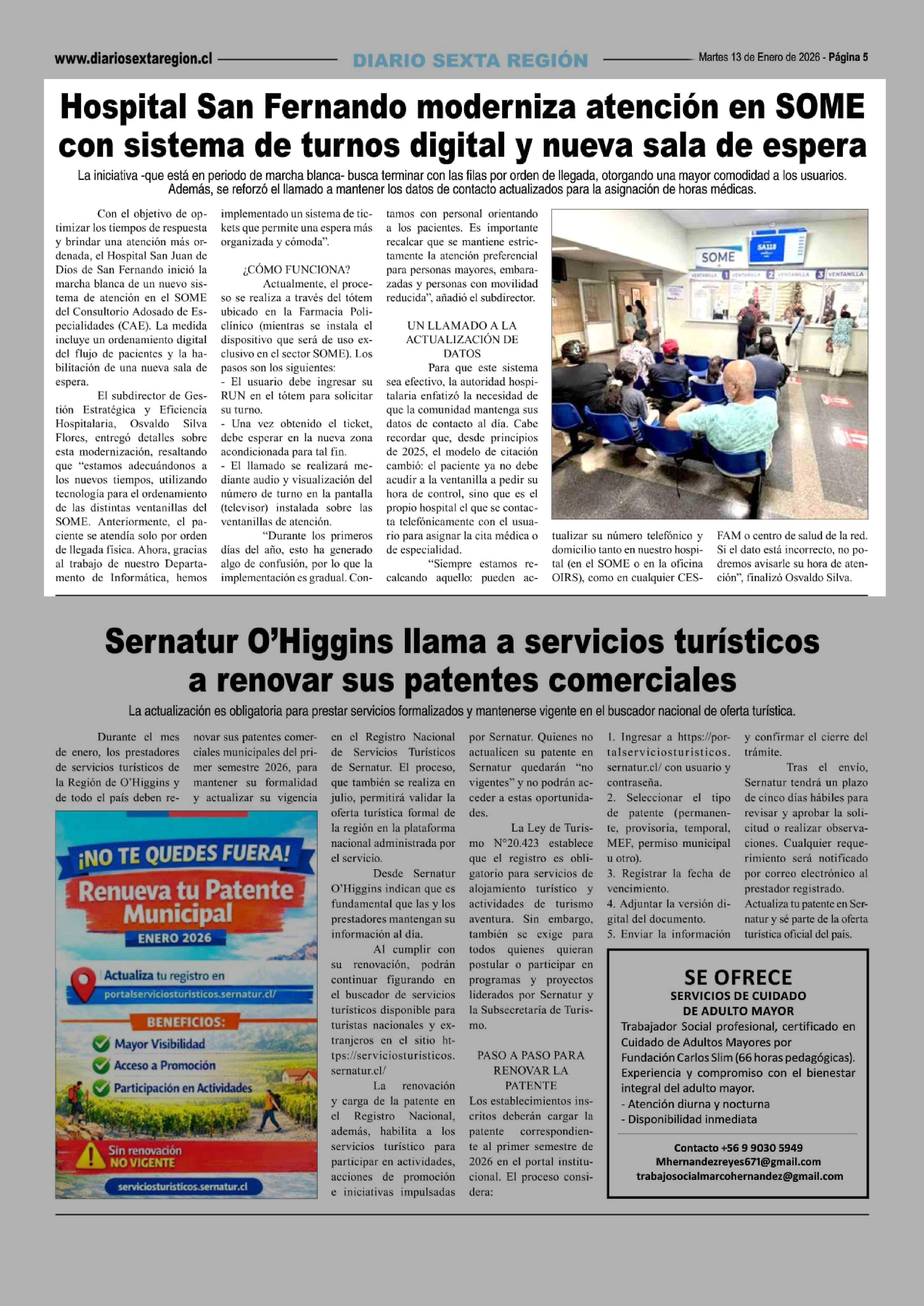 13-01-2026 Diario VI Región