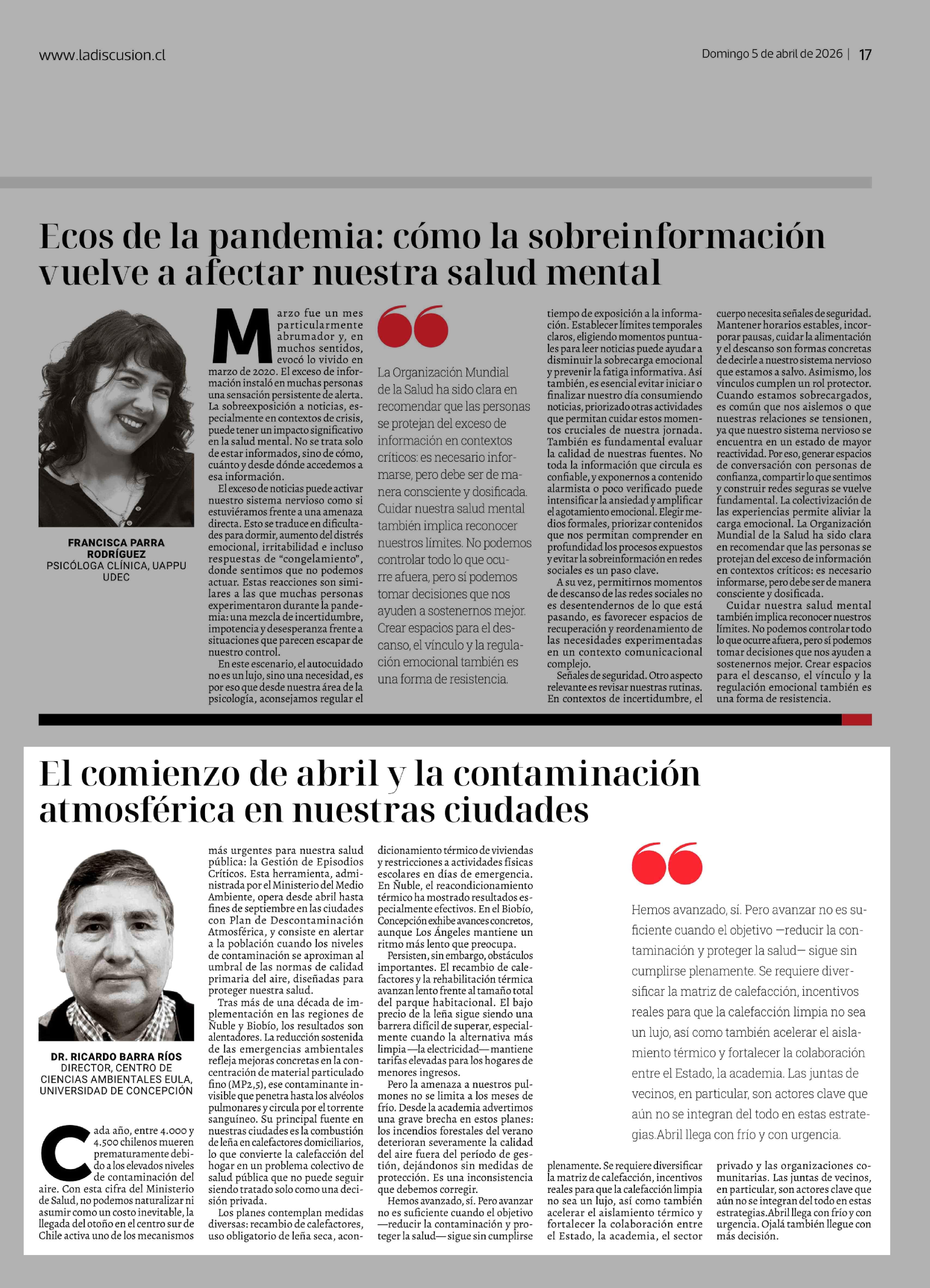 El comienzo de abril y la contaminación atmosférica en nuestras ciudades 05-04-2026 La Discusión |