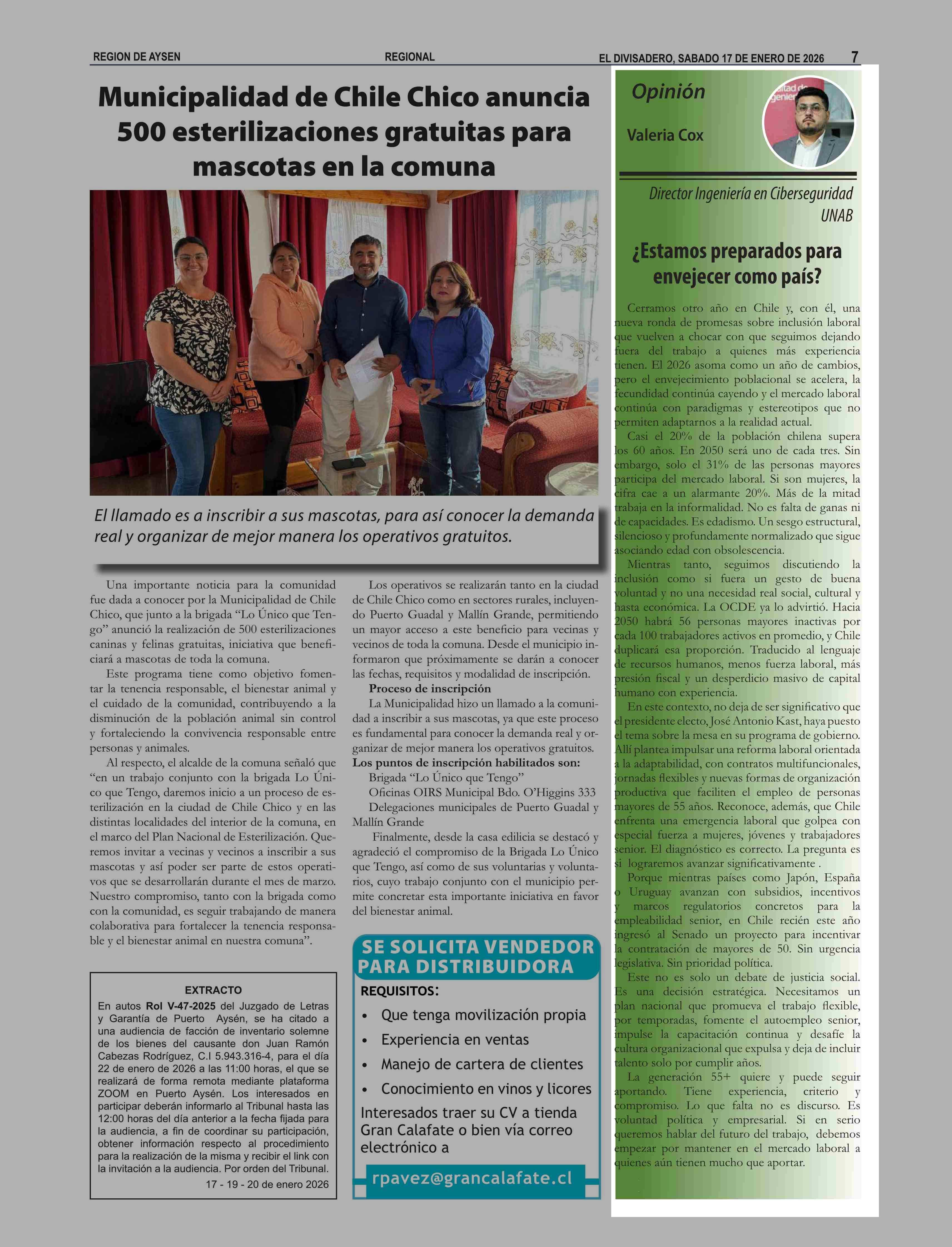 COLUMNAS DE OPINIÓN: ¿ Etamos preparados para envejecer como país? 17-01-2026 El Divisadero |