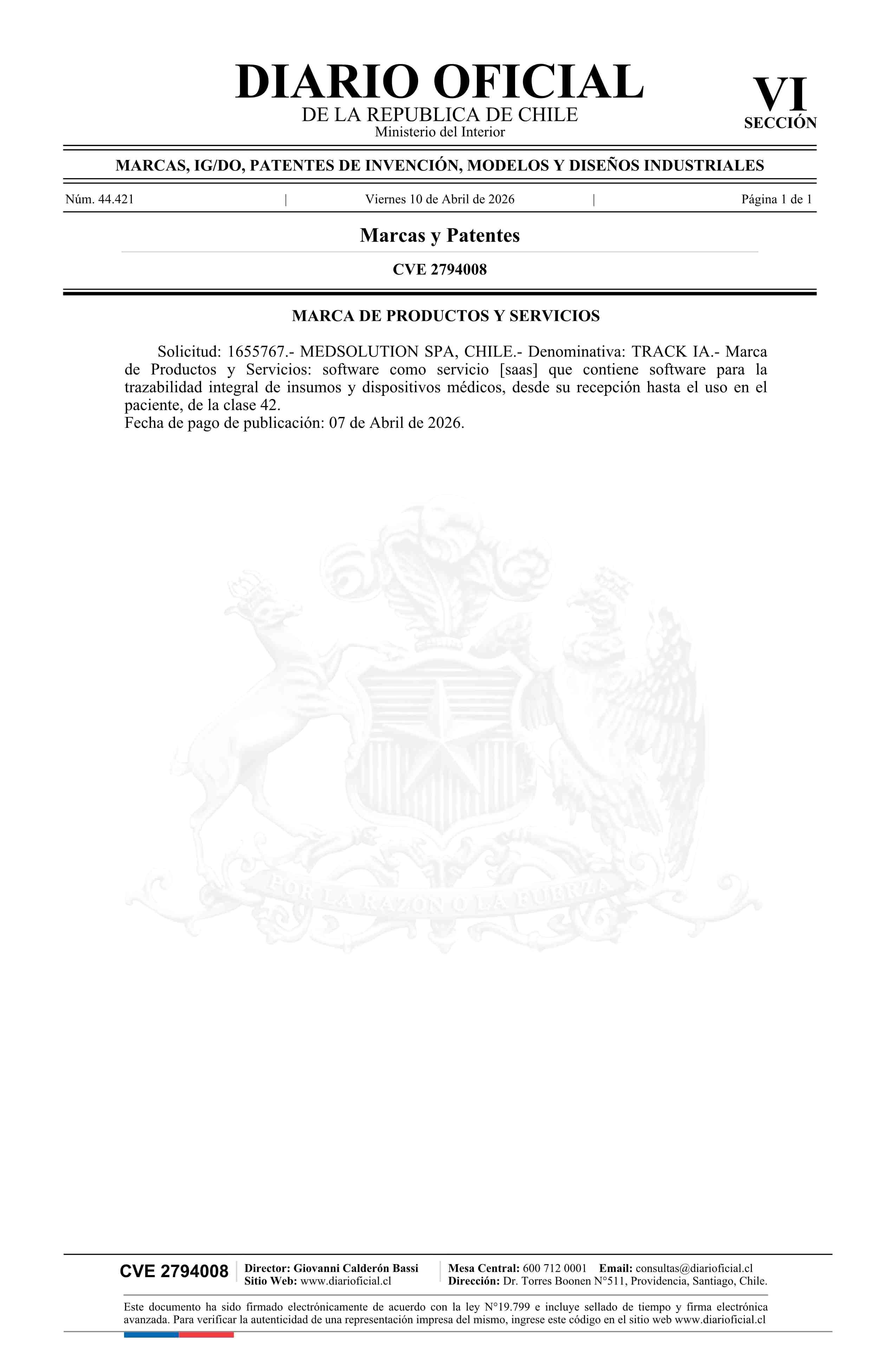 Solicitud número 1655767.- TRACK IA 10-04-2026 Diario Oficial Edición Electrónica |