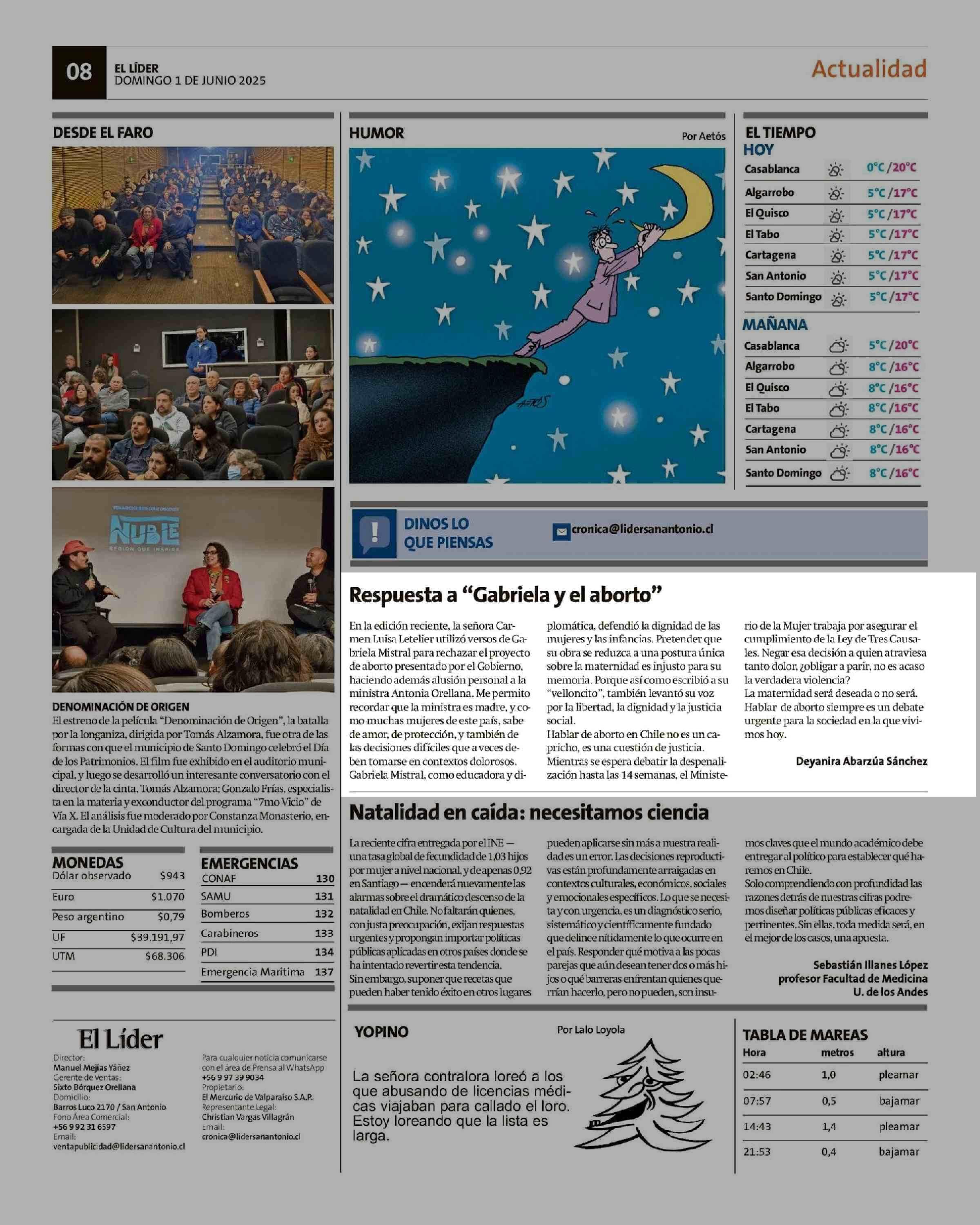 CARTAS: Respuesta a “Gabriela y el aborto” 01-06-2025 El Líder |