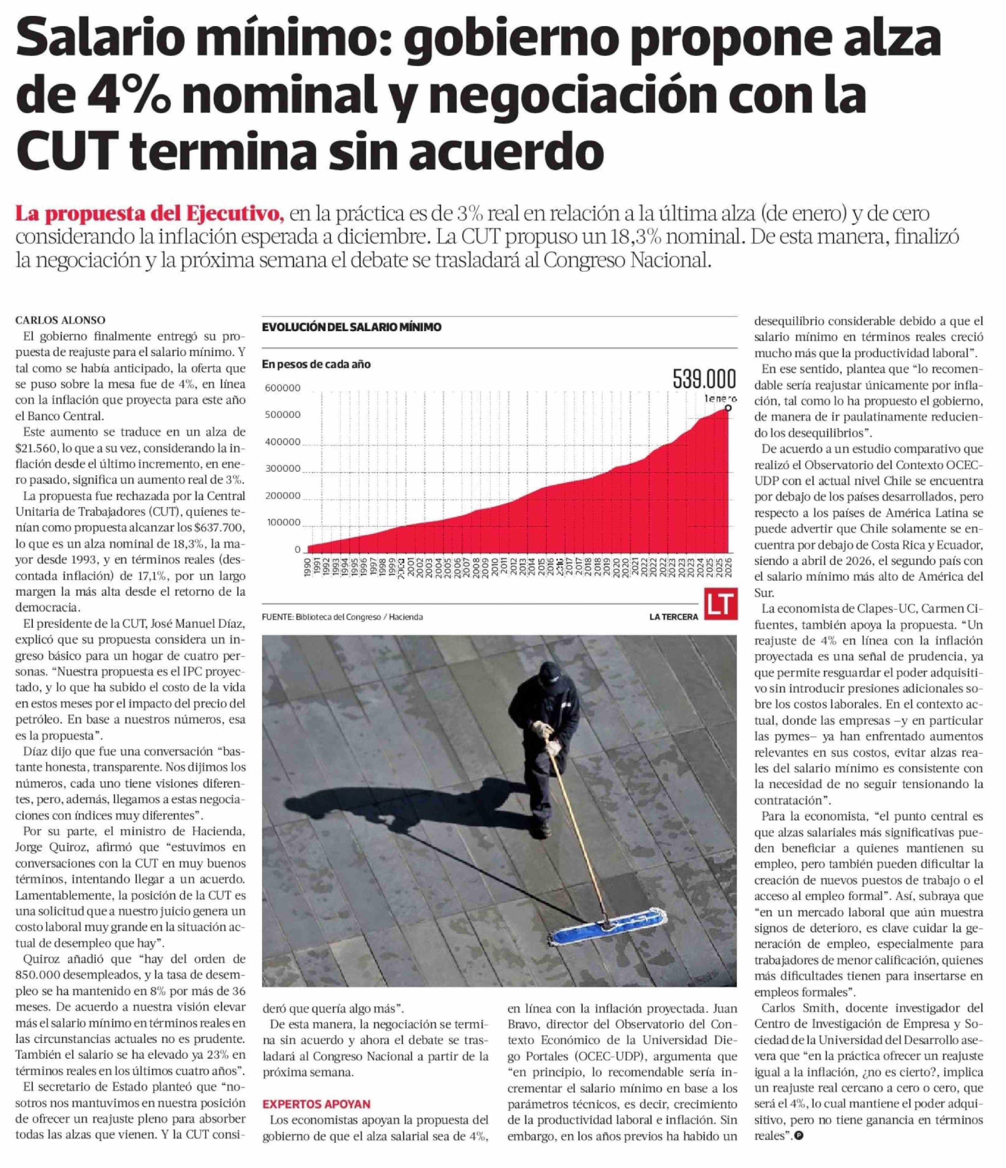Título: Salario mínimo: gobierno propone alza de 4% nominal y negociación con la CUT termina sin acuerdo