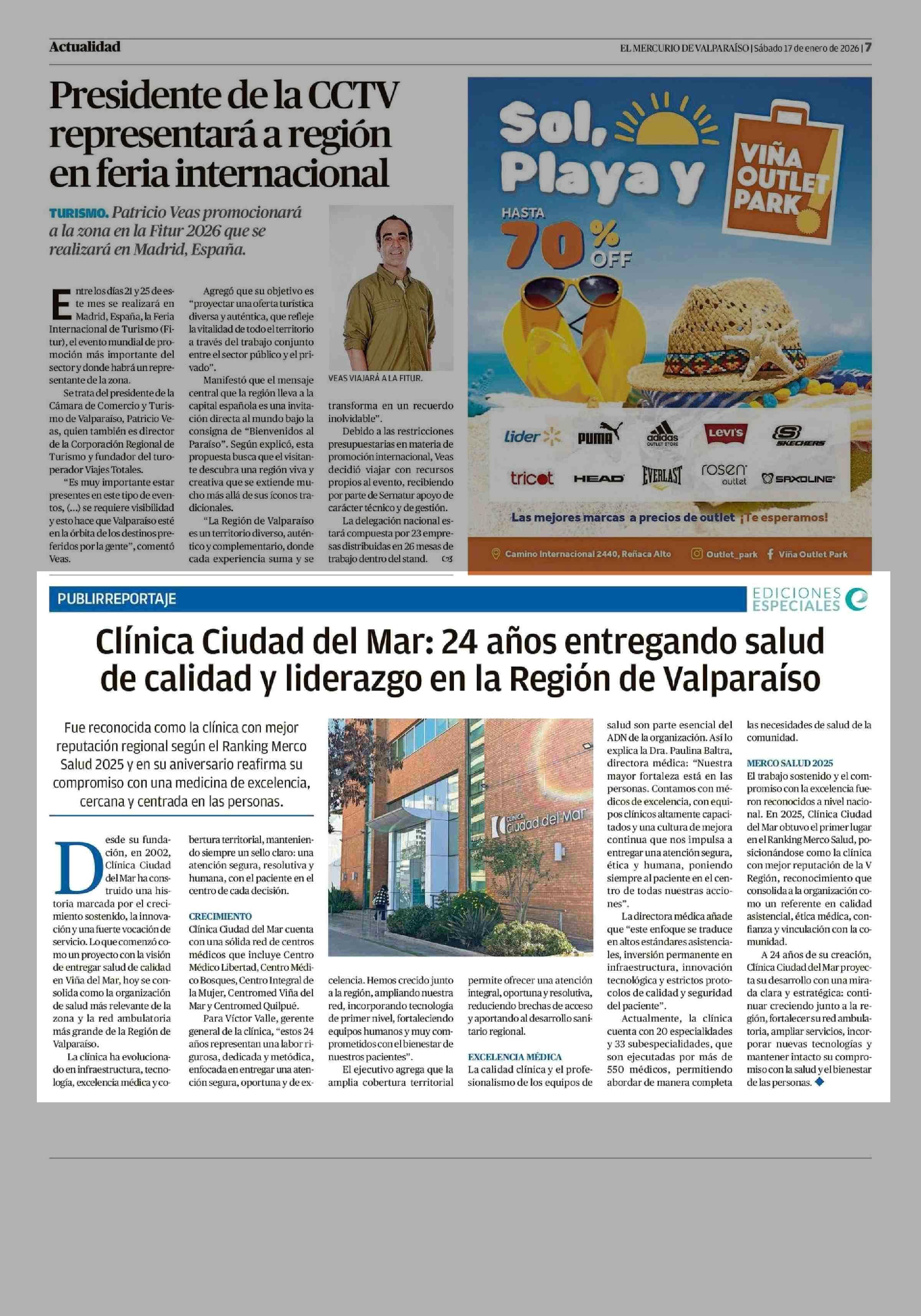 Clínica Ciudad del Mar: 24 años entregando salud de calidad y liderazgo en la Región de Valparaíso 17-01-2026 El Mercurio de Valparaíso |