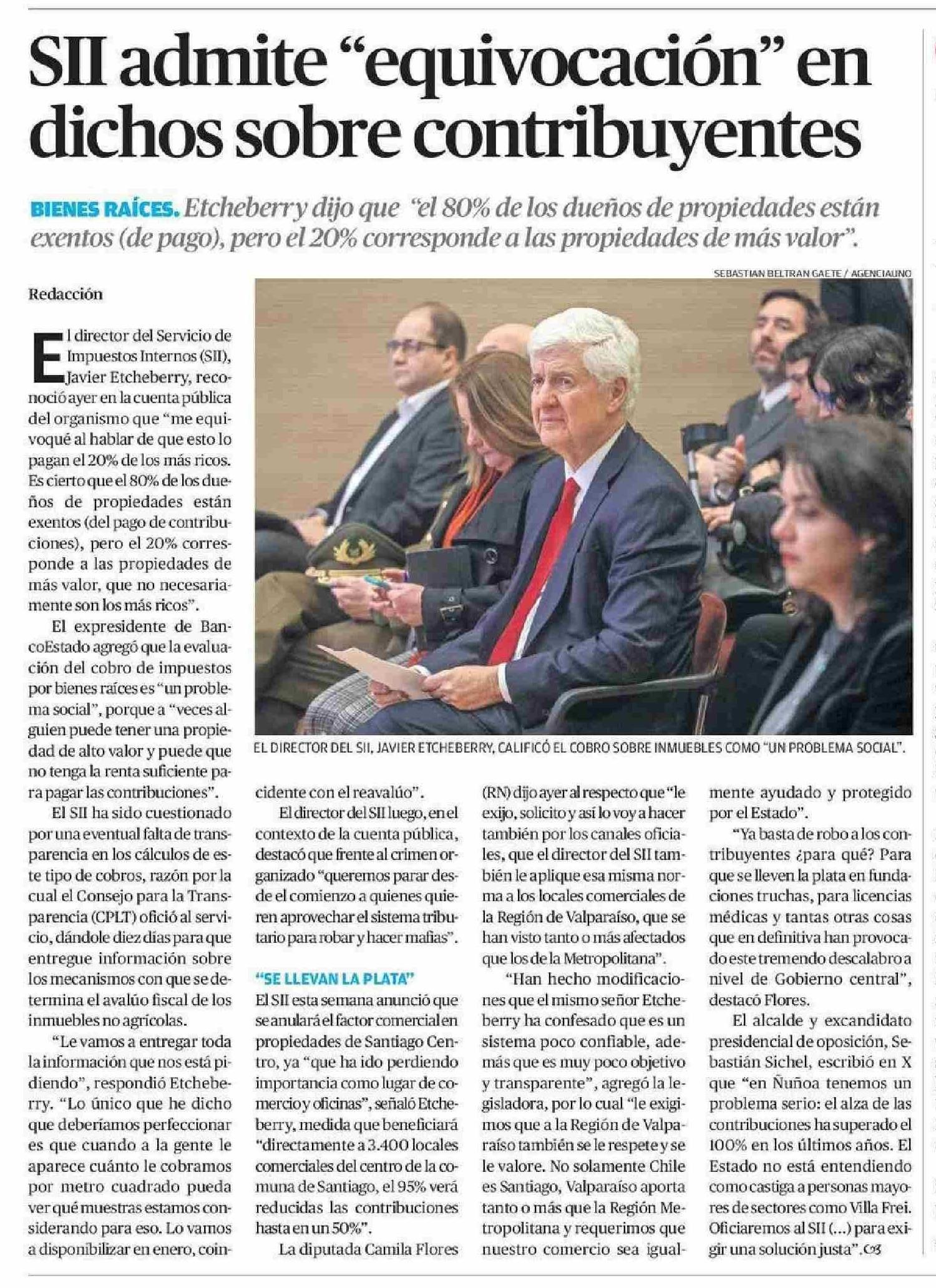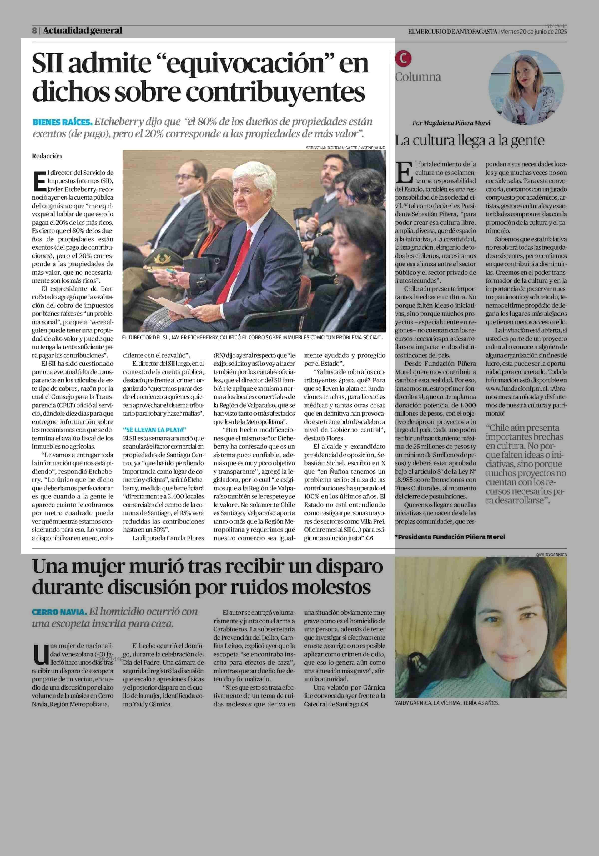SII admite "equivocación" en dichos sobre contribuyentes 20-06-2025 El Mercurio de Antofagasta |