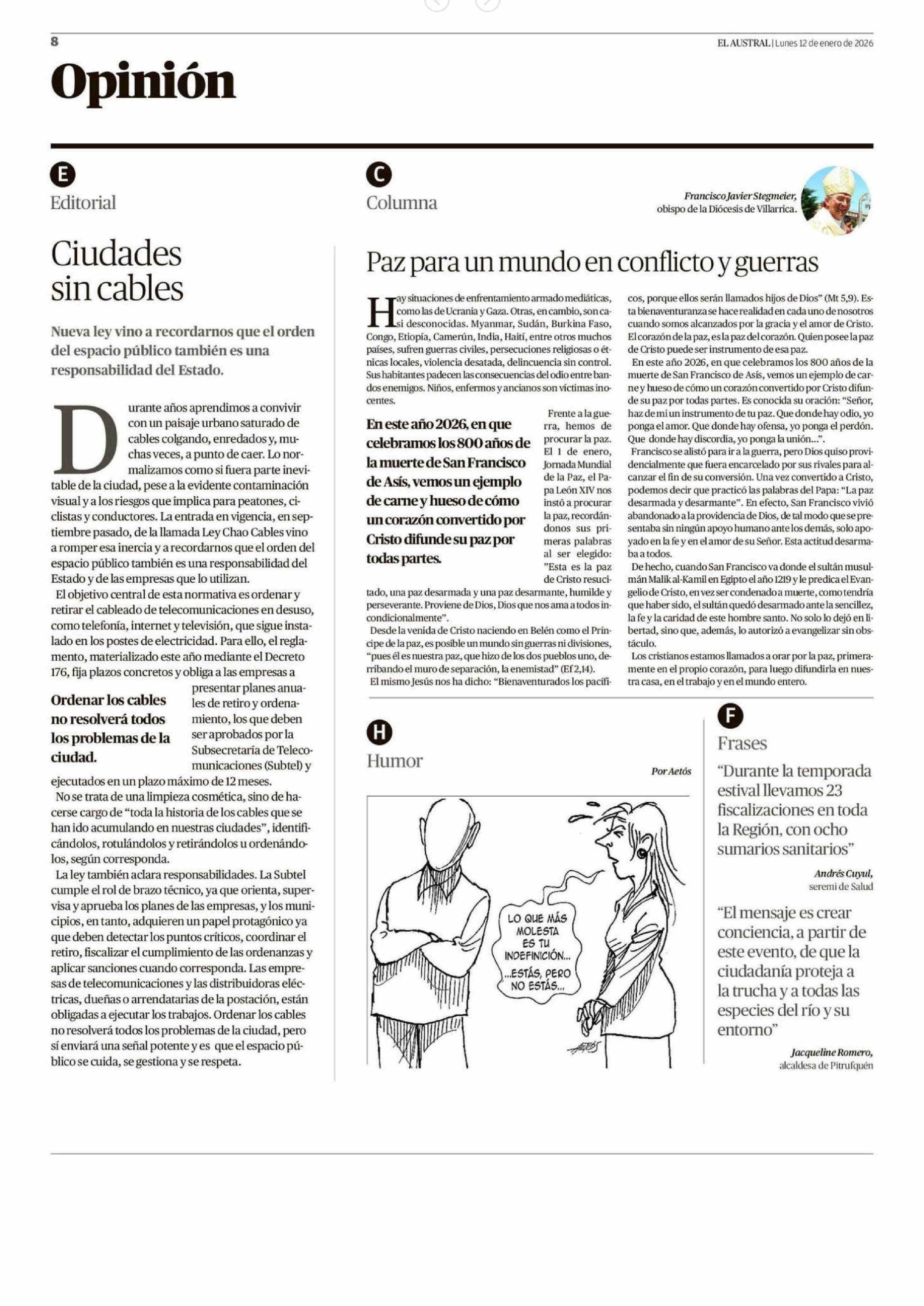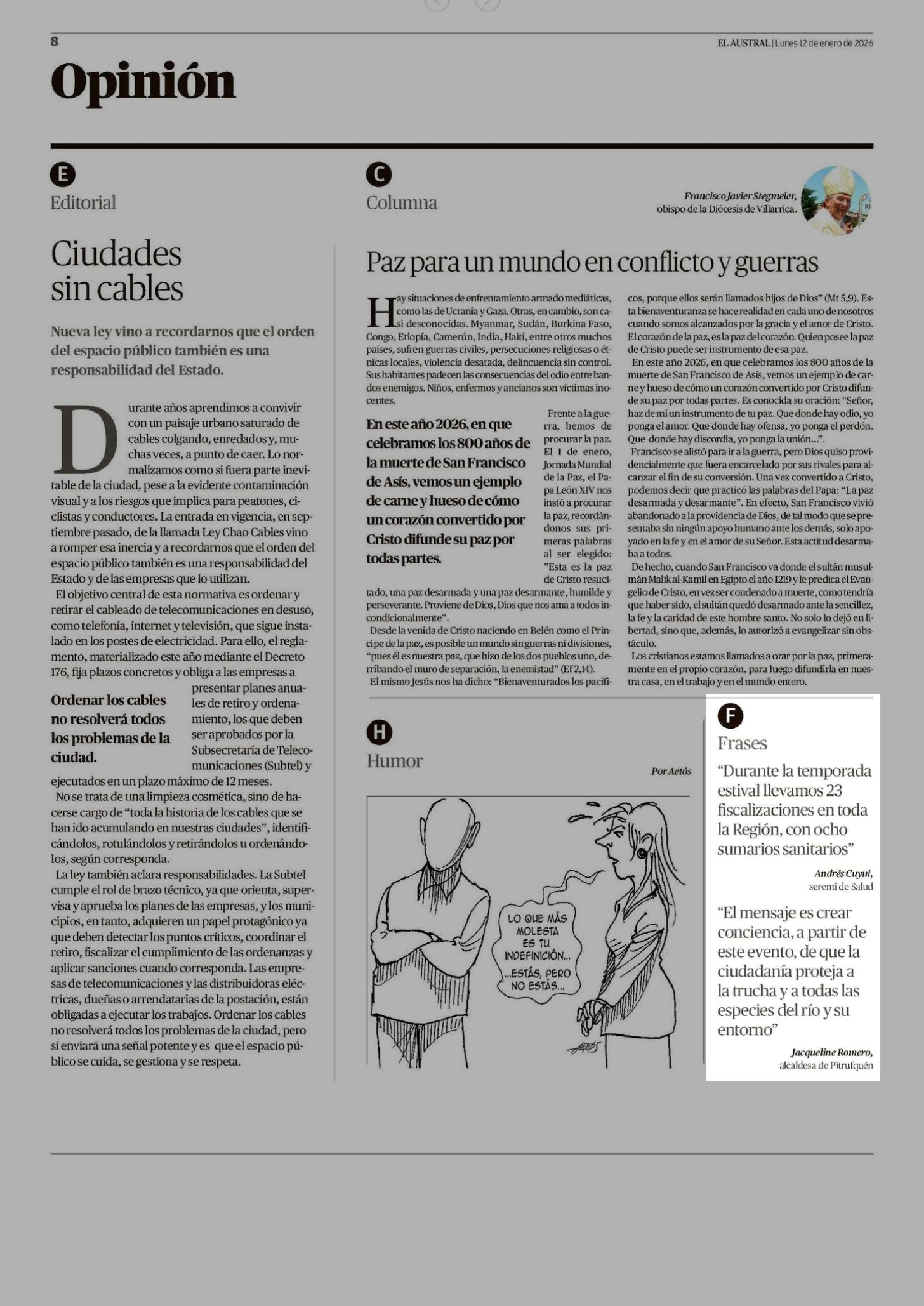 F Frases "Durante la temporada estival llevamos 23 fiscalizaciones en toda la Región, con ocho sumarios sanitarios" 12-01-2026 El Austral de la Araucanía |