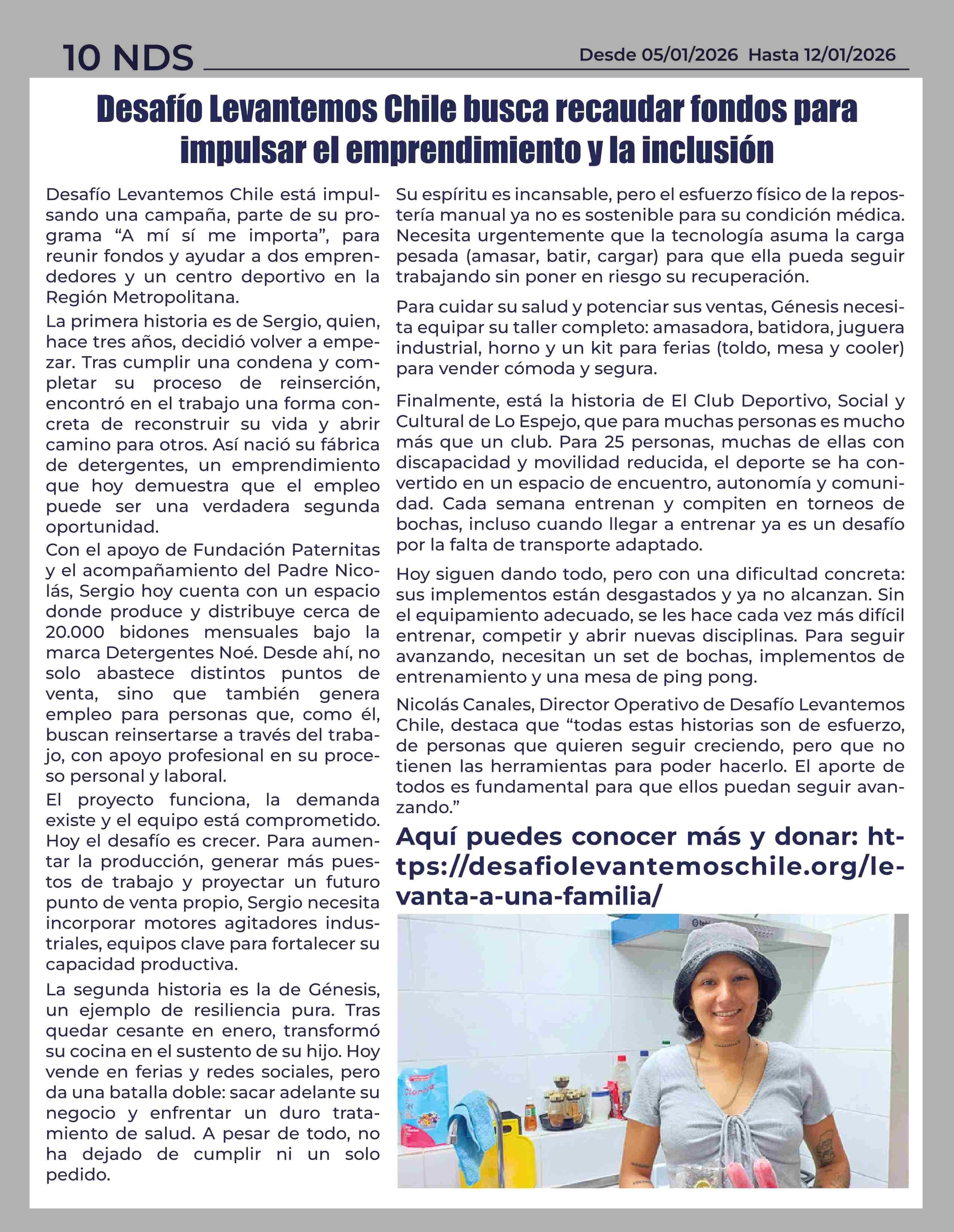 Desafío Levantemos Chile busca recaudar fondos para impulsar el emprendimiento y la inclusión 06-01-2026 Noticias del Sur |