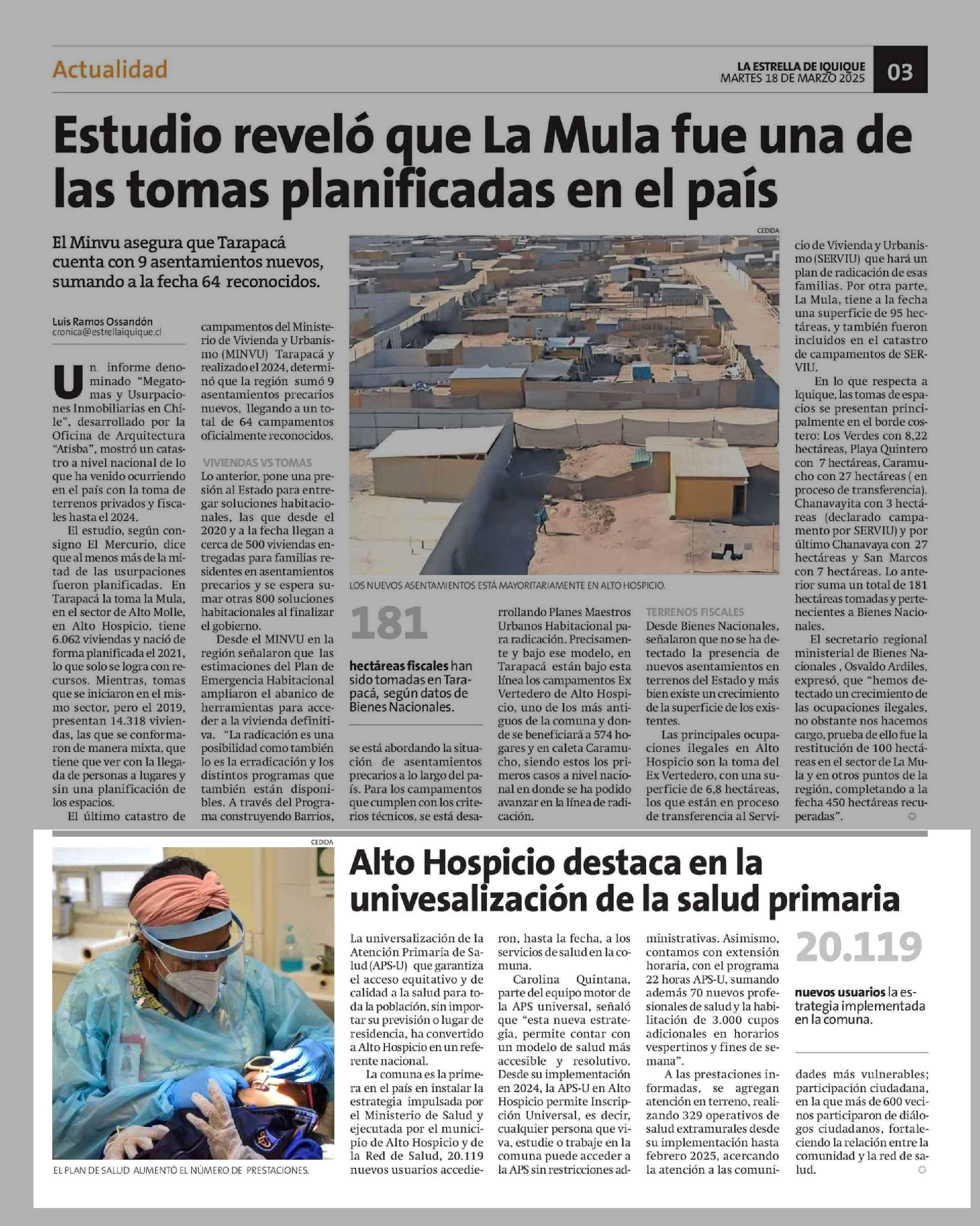 | Fecha: | 18-03-2025 | Sector: | Noticia general | Región: | Región de Tarapacá |
