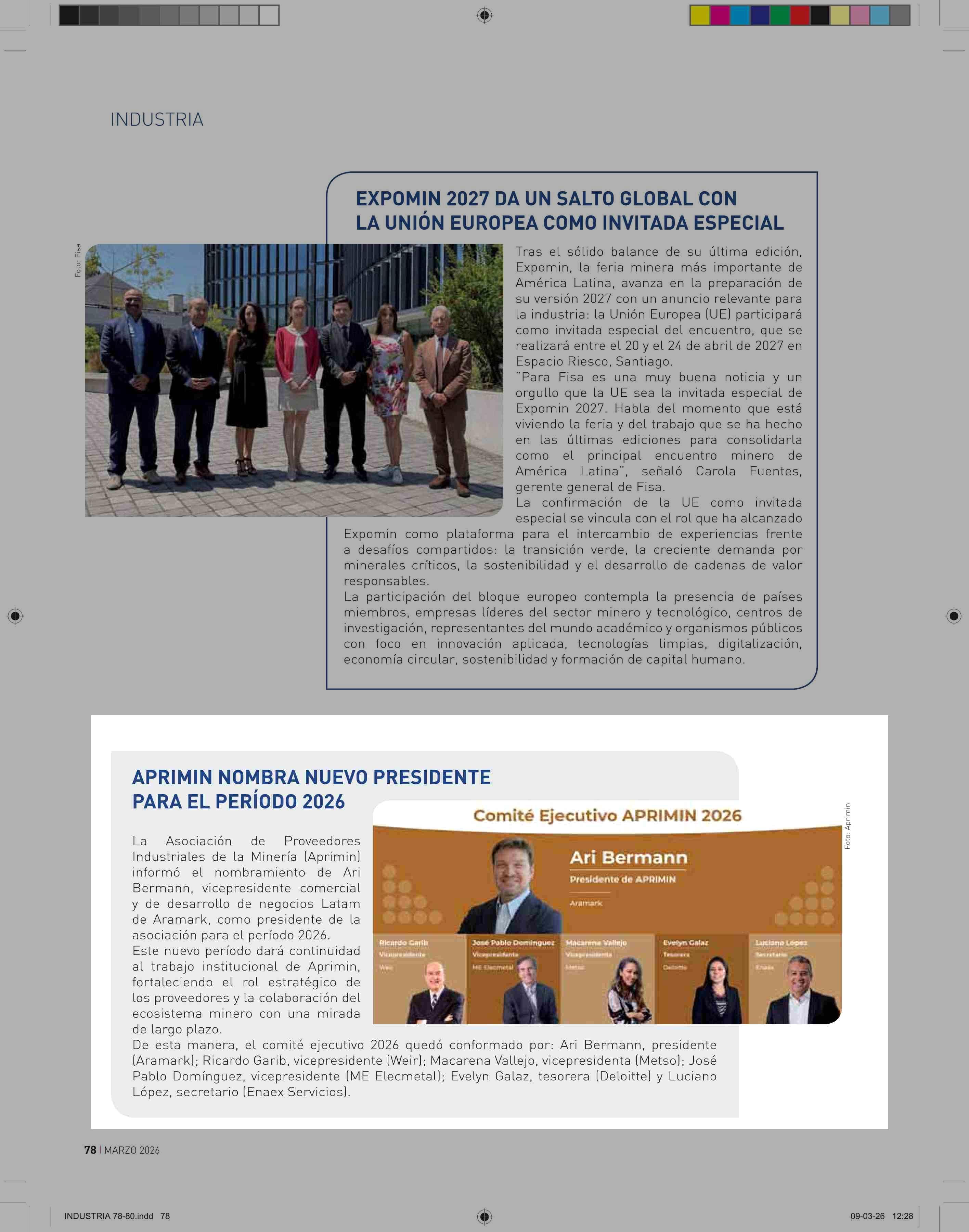 APRIMIN NOMBRA NUEVO PRESIDENTE PARA EL PERÍODO 2026 Berrnann 10-03-2026 Revista Nueva Minería & Energía |