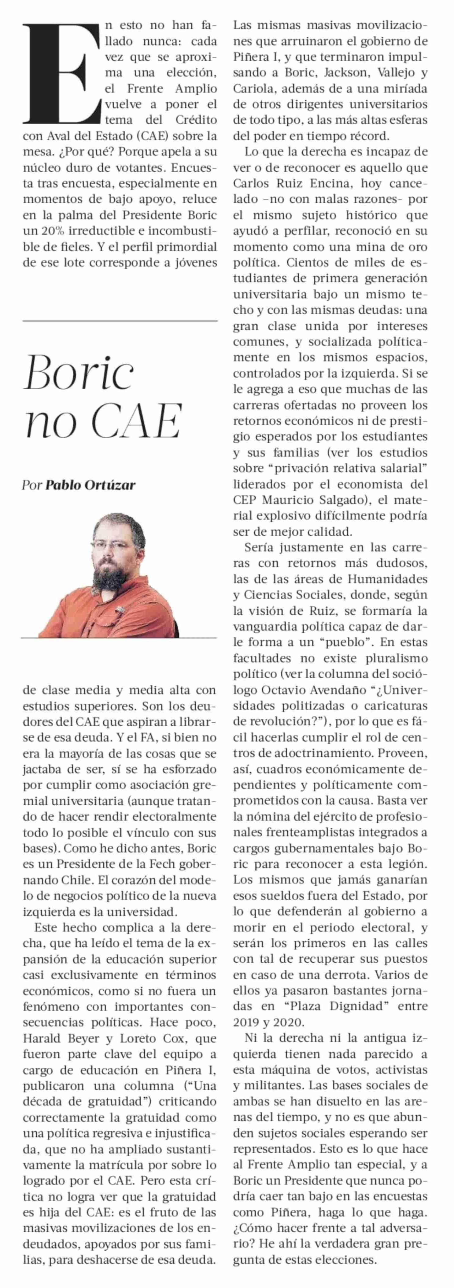 | Título: | COLUMNAS DE OPINIÓN: Boric no CAE |