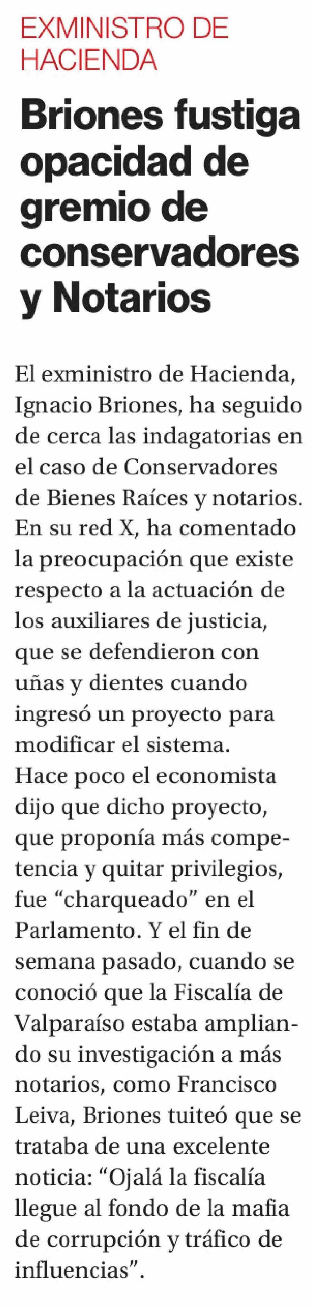 Briones fustiga opacidad de gremio de conservadores y Notarios 10-02-2026 La Segunda |