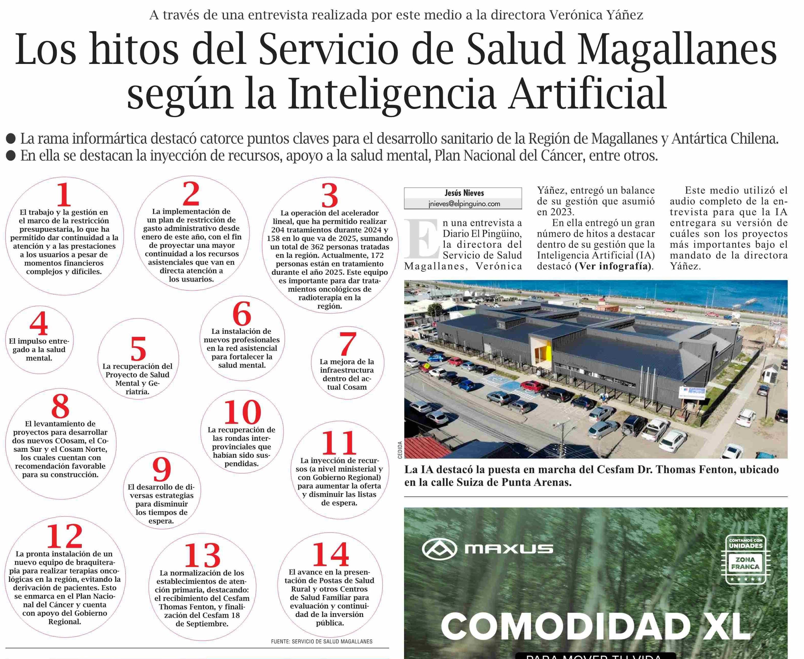 Los hitos del Servicio de Salud Magallanes según la Inteligencia Artificial 12-06-2025 El Pingüino |