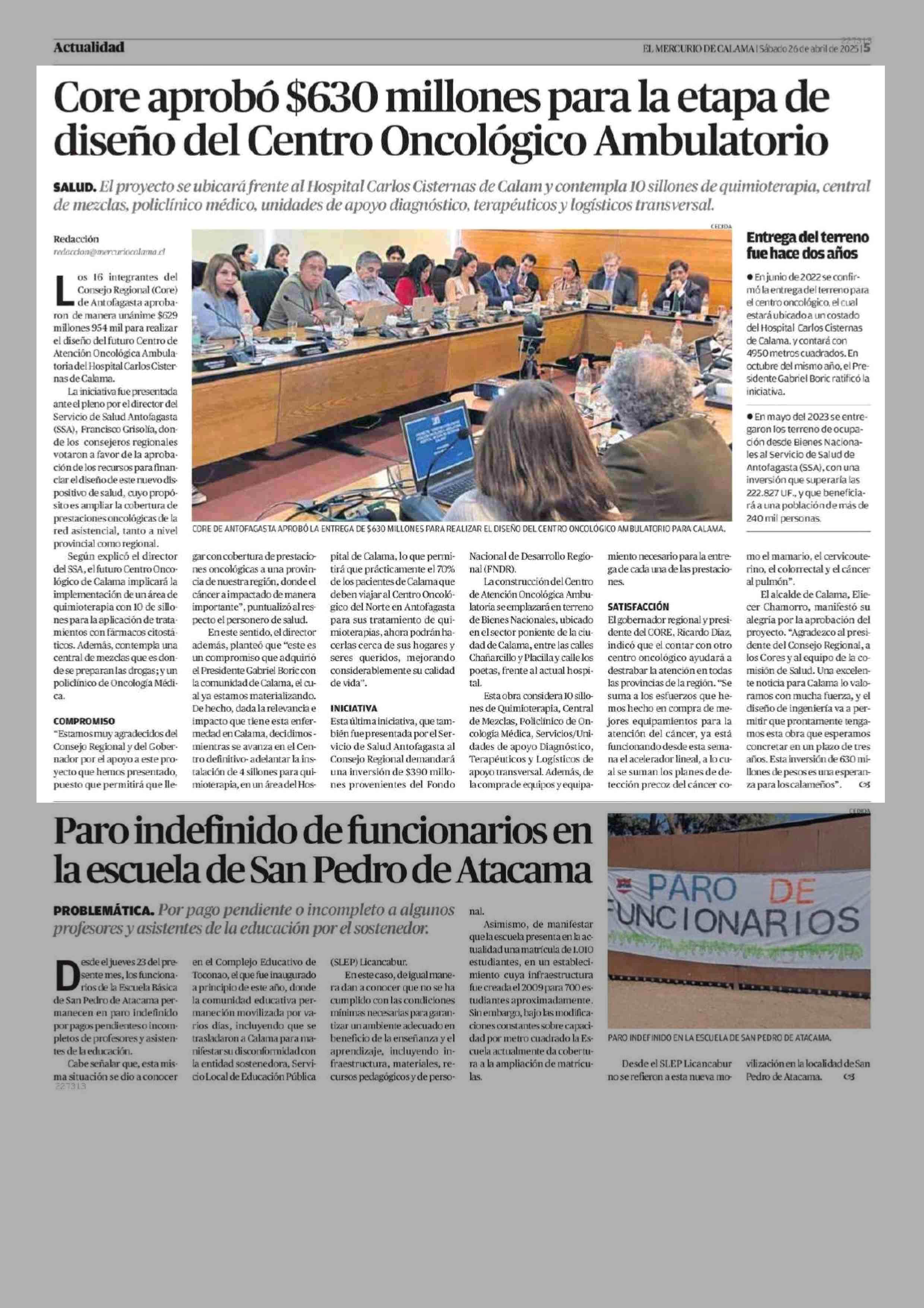 Core aprobó $630 millones para la etapa de diseño del Centro Oncológico Ambulatorio 26-04-2025 El Mercurio de Calama |