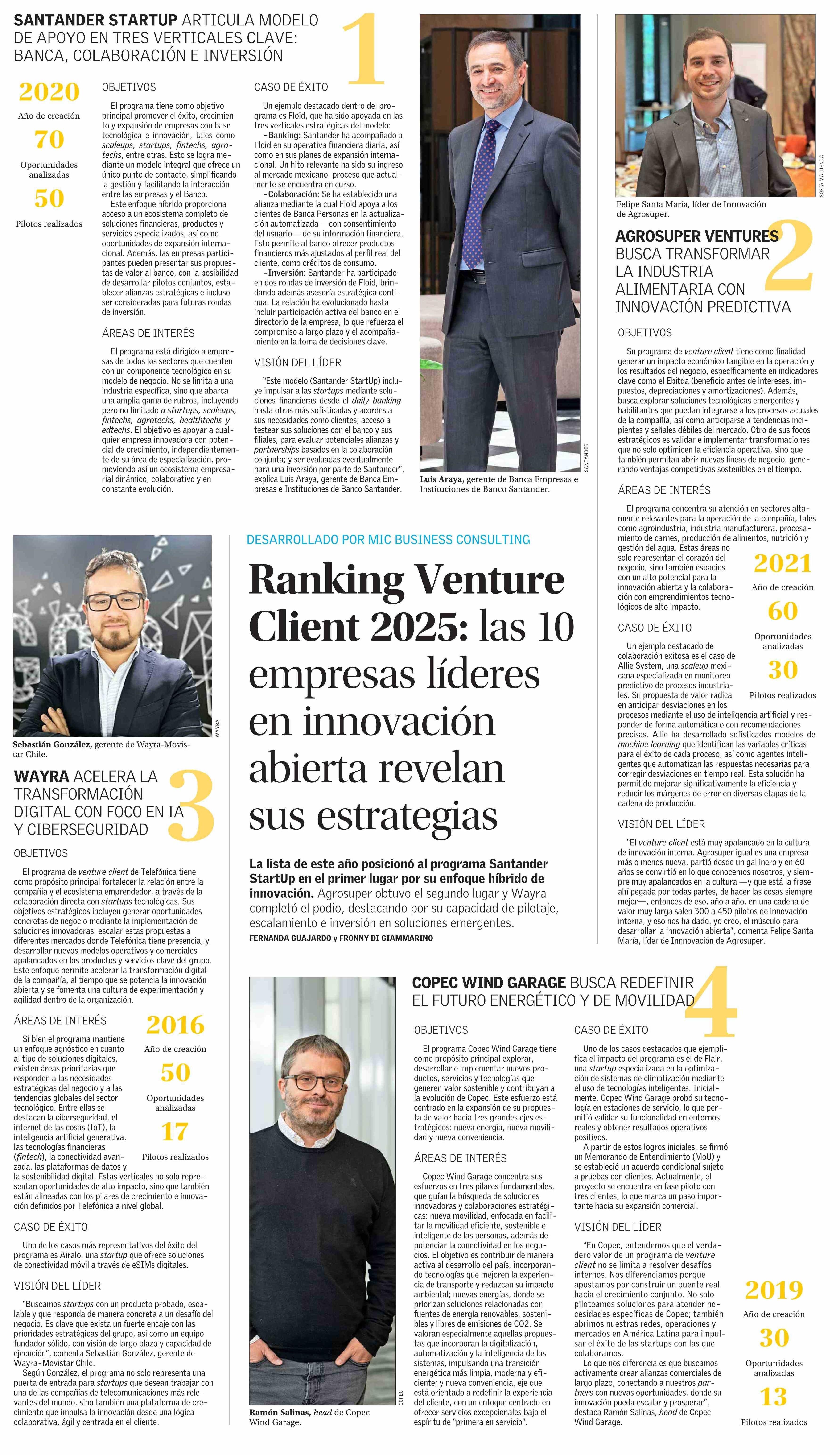 Ranking Venture Client 2025: las 10 empresas líderes en innovación abierta revelan sus estrategias 29-05-2025 El Mercurio |