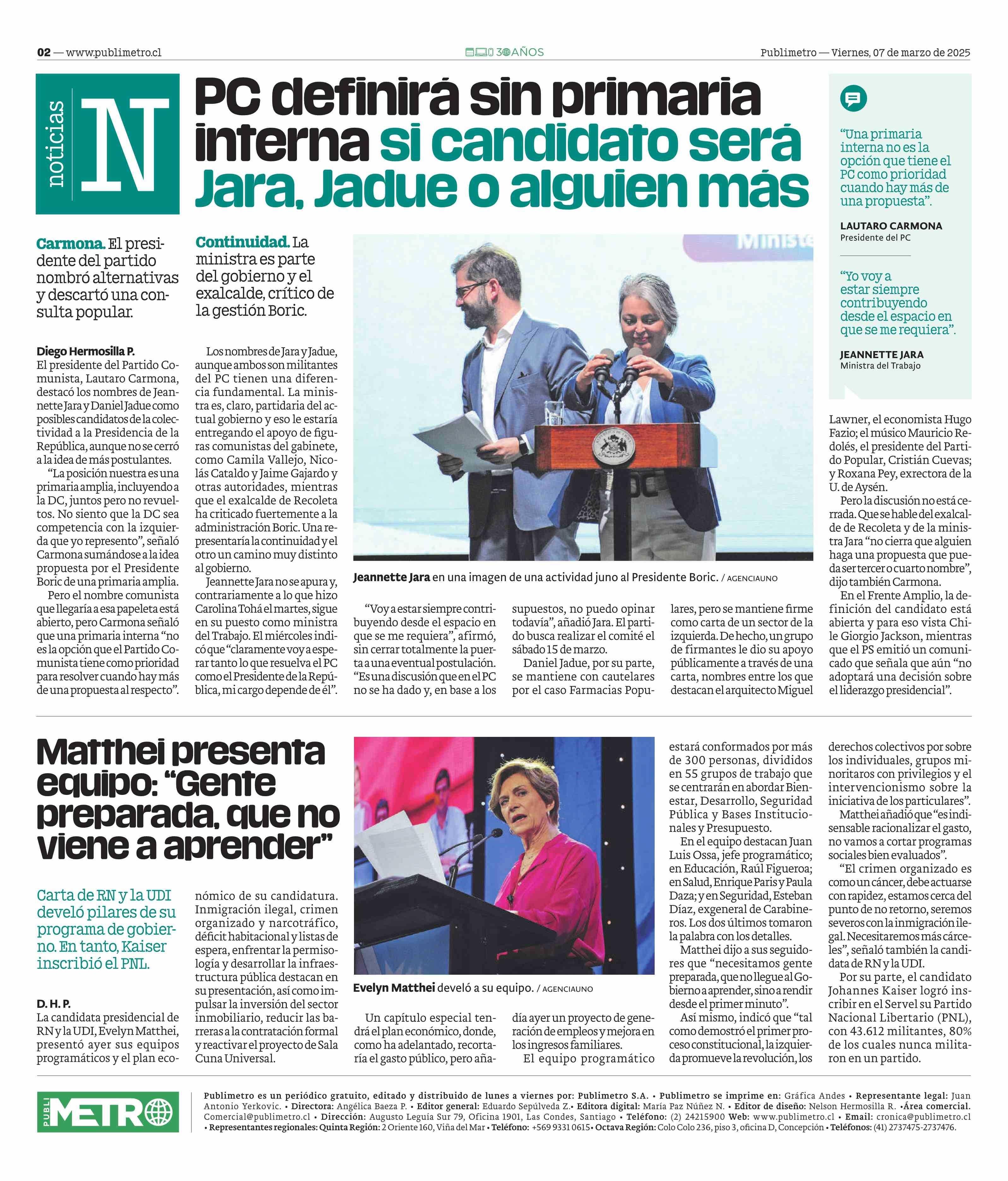 PC definira sin primaria interna si candidato será Jara. Jadue o alguien mas 07-03-2025 Publimetro |
