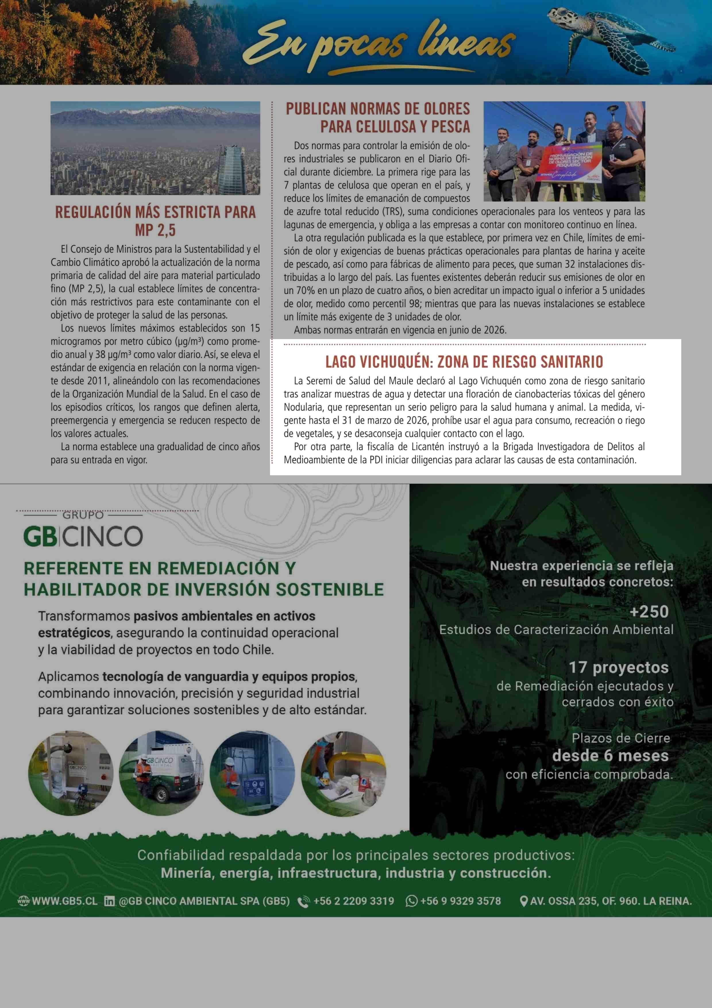 LAGO VICHUQUÉN: ZONA DE RIESGO SANITARIO 08-01-2026 Revista Induambiente |