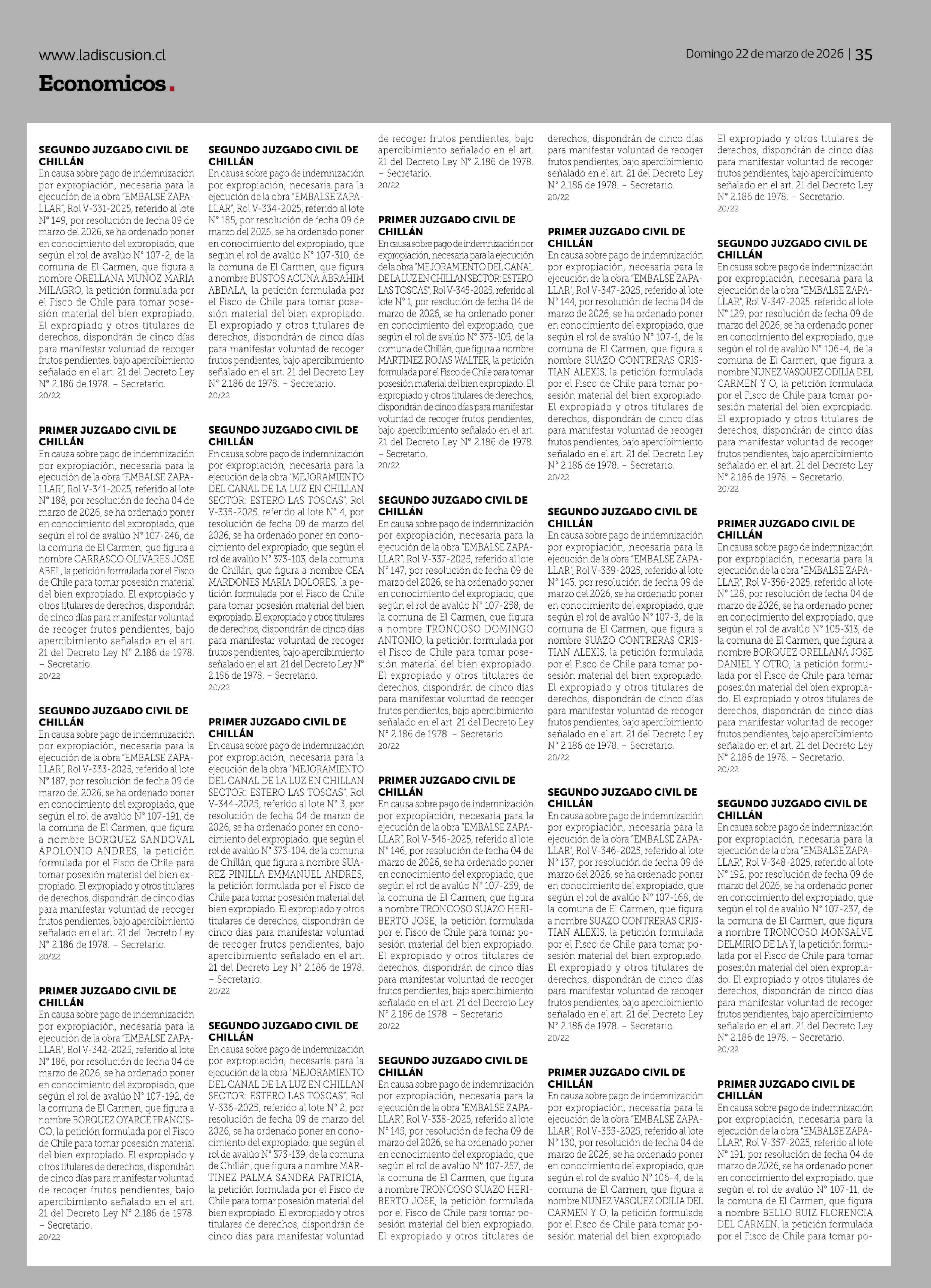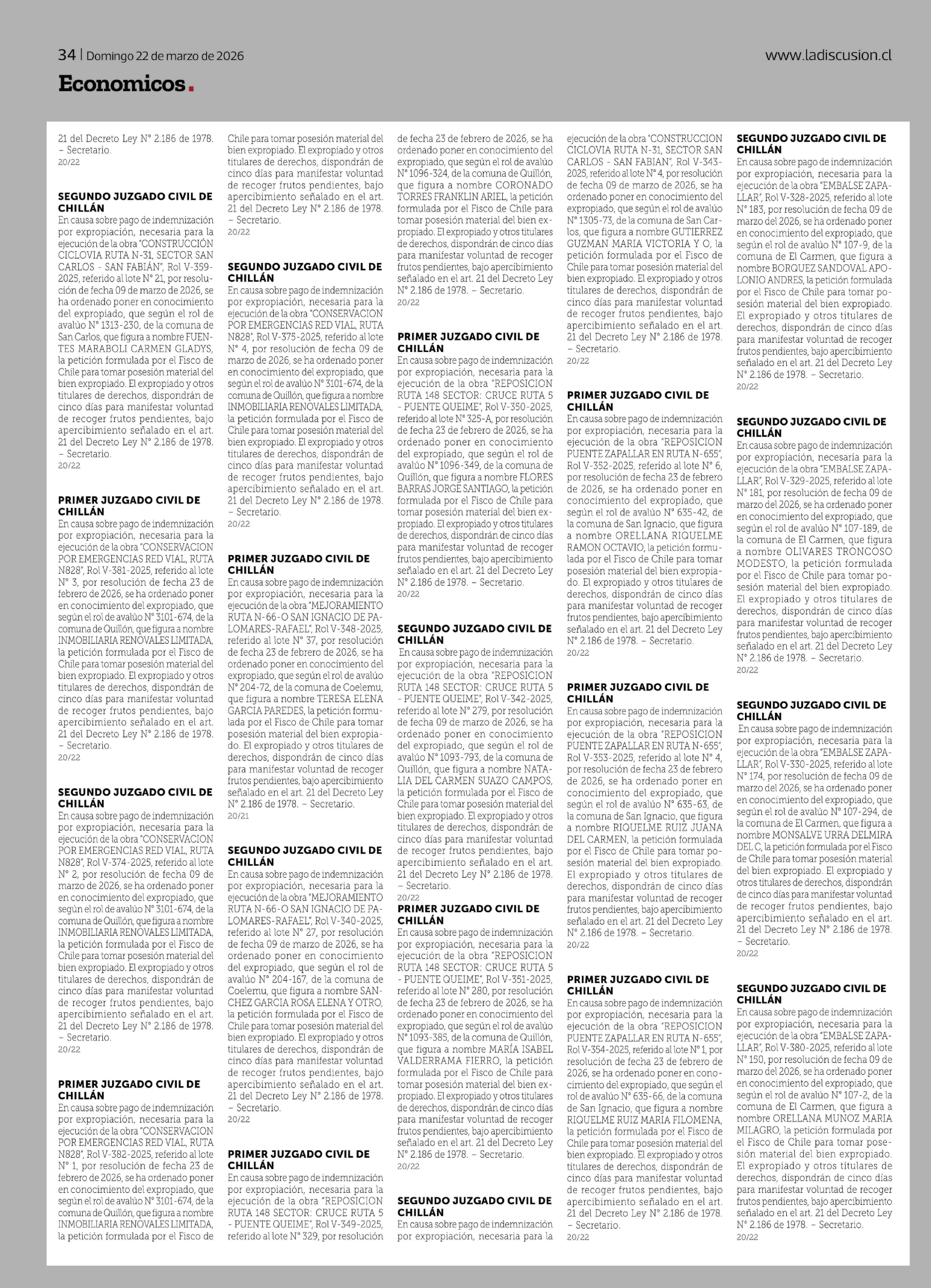 21 del Decreto Ley Nº 2.186 de 1978. - Secretario. 22-03-2026 La Discusión |